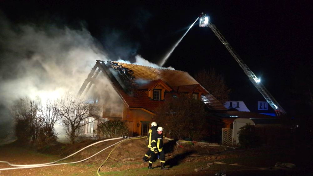 Volkmarsen – In Volkmarsen im Ortsteil Lütersheim kam es am frühen Dienstagmorgen gegen 06.00 Uhr zum Brand eines Wohnhauses. Eine Frau die gerade Zeitungen austrug, entdeckte das Feuer und setzte den Notruf ab. Zu diesem Zeitpunkt schlugen bereits die Flammen aus dem Dach. Die zur Einsatzstelle gerufene Feuerwehr drang sofort in das Gebäude vor und fand dort den Bewohner des Hauses im Erdgeschoss hinter einer Tür.