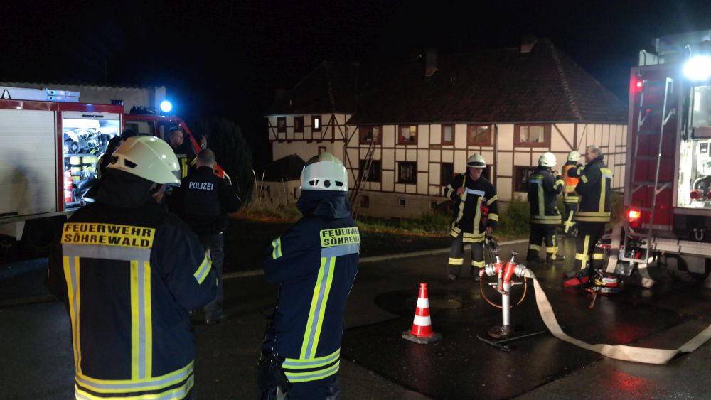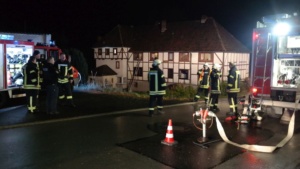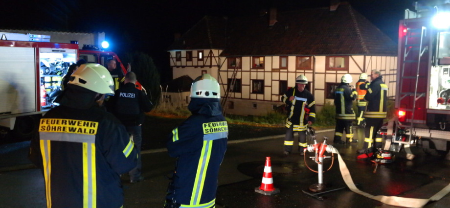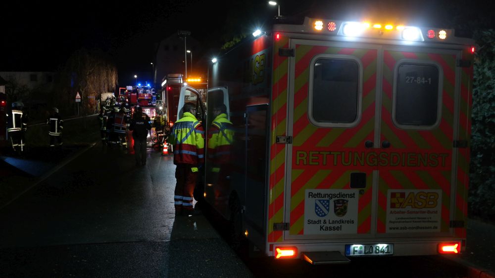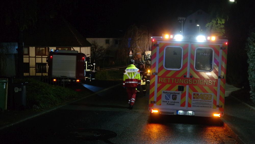 Wattenbach – Am Sonntagabend gegen 21.30 Uhr kam es zu einem Wohnhausbrand in Söhrewald-Wattenbach. Beim Eintreffen der Feuerwehr wurde im Untergeschoss im Bereich einer Küche ein Feuer entdeckt. Auf Grund der sehr starken Rauchentwicklung wurde entschieden die noch im Haus befindlichen sieben Personen mittels Steckleiter über Fenster zu retten. Insgesamt wurden drei Personen verletzt und mussten in ein Krankenhaus eingeliefert werden.