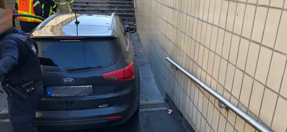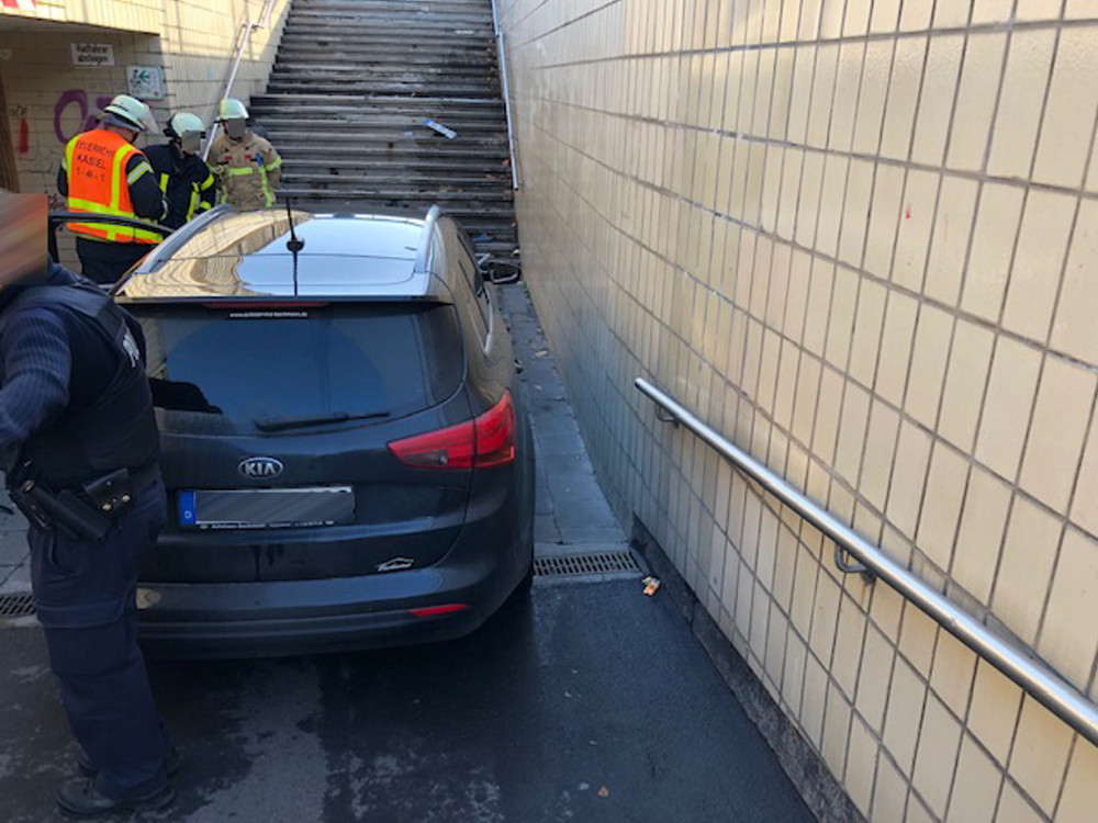 Kassel – Am Dienstagnachmittag gegen 13.30 Uhr kam der Fahrer eines PKW am Platz der Deutschen Einheit von der Straße ab und fuhr die Rampe einer Fußgängerunterführung herunter. Wie die Polizei berichtet, war der aus Richtung Innenstadt kommende und in Richtung B 83 fahrende 67-Jährige aus dem Werra-Meißner-Kreis entsprechend bereits mehrere Meter vor der Rampe gegen den Bordstein gestoßen und von der Straße auf den Gehweg abgekommen.