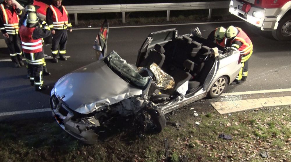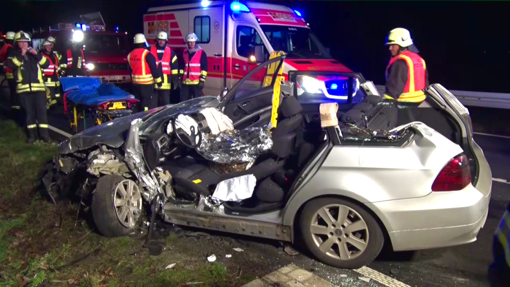 Der dem Bad Emstaler entgegenkommende 36-jähriger BMW-Fahrer erkannte die Situation sofort und versuchte noch nach rechts auszuweichen. Dabei krachte er in die Leitplanke. Beide Fahrzeuge kollidierten dennoch teils frontal mit ihren linken Fahrzeugseiten. Dadurch wurde der 36-jährige Fahrer im Fußraum derart eingeklemmt, dass die Feuerwehr schwere hydraulische Geräte benötigte, um den Mann zu befreien. Seine Verletzungen sind nach ersten Erkenntnissen von der Einsatzstelle schwer, aber glücklicherweise nicht lebensbedrohlich. Glück im Unglück hatten zudem alle anderen beteiligten. Seine Beifahrerin, das ebenfalls im BMW sitzende Kind sowie der 75-jährige Verursacher wurden bei dem Unfall leichtverletzt. Eine durch Zufall an der Einsatzstelle vorbeikommende Rettungswagenbesatzung des ASB Kassel kümmerte umgehend bis zum Eintreffen aller Einsatzkräfte um die Verletzten. Alle Beteiligten kamen in Krankenhäuser nach Fritzlar und Kassel. Neben der Polizei Fritzlar war außerdem der Rettungsdienst mit drei Rettungswagen, zwei Notärzten, zwei Organisatorische Leiter Rettungsdienst und einem leitenden Notarzt vor Ort im Einsatz. Ebenso die Feuerwehr Fritzlar, Rothhelmshausen und Ungedanken unter der Leitung von Einsatzleiter Jörg Bubenhagen.