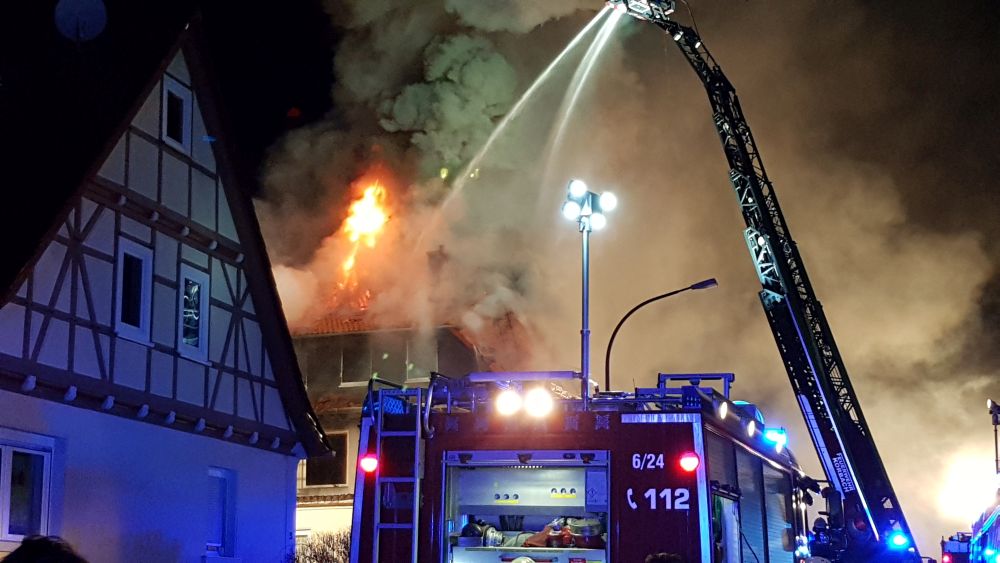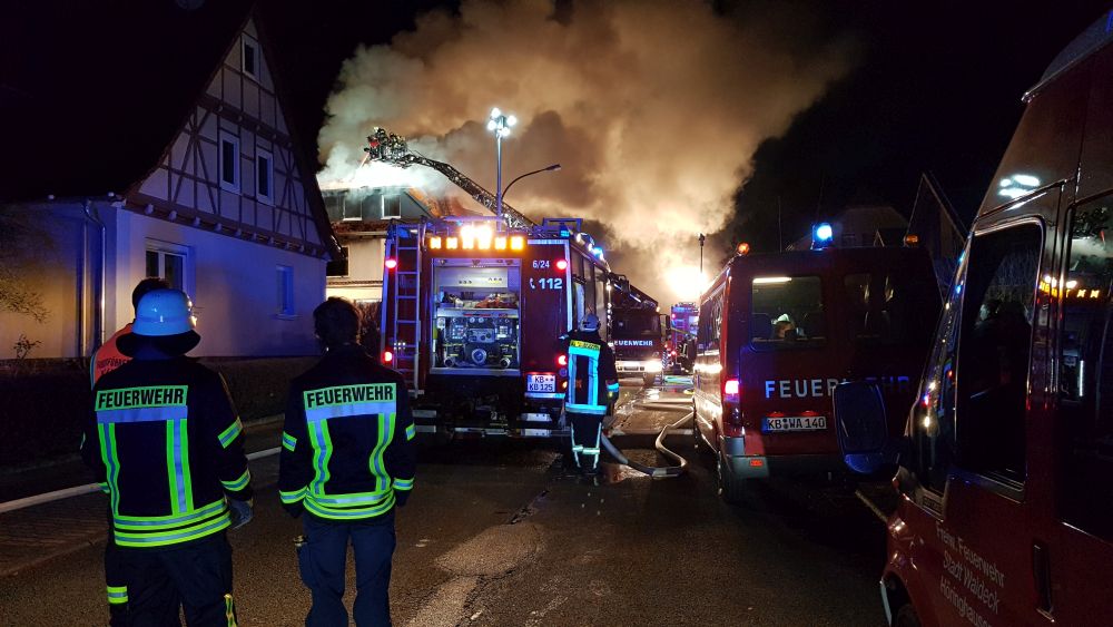 Die Mieter der anderen beiden Wohnungen, ein 48-jähriger sowie ein 54-jähriger Mann, befanden sich zum Zeitpunkt des Brandausbruches nicht im Haus. Für zwei Schäferhunde die sich ebenfalls im Haus befanden kam jedoch jede Hilfe zu spät. Das Feuer befand sich in einer Zwischendecke, was die Löschmaßnahmen erschwerte. Trotz intensiver Bemühungen der Feuerwehr, konnte der Brand auch auf den Dachstuhl übergreifen. Zunächst schlugen die Flammen aus den Fenstern und kurze Zeit später auch aus dem Dach. Um den Brand unter Kontrolle bringen zu können, wurden zwei Drehleitern von der Feuerwehr Korbach und Bad Arolsen eingesetzt. Die Feuerwehr war neben Polizei und Rettungsdienst mit rund 70 Einsatzkräften vor Ort. Wie es zu dem Brand kommen konnte ist aktuell noch unklar. Der Sachschaden wird nach Angaben der Polizei auf rund 300.000 Euro geschätzt.