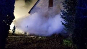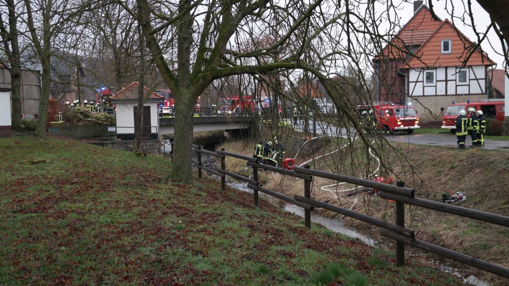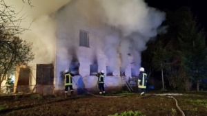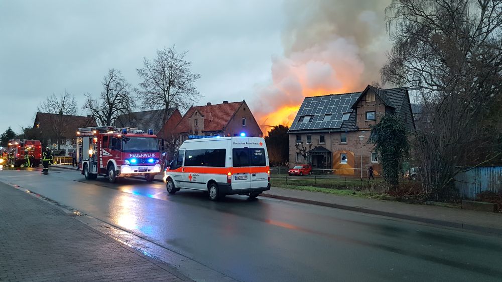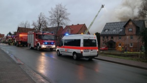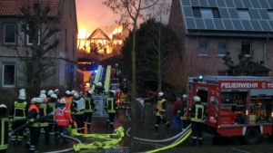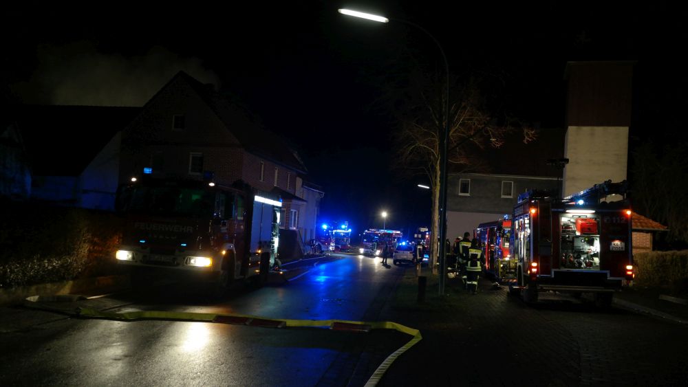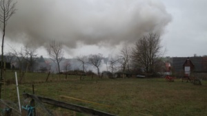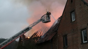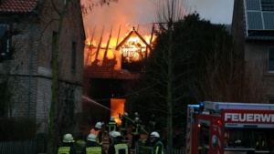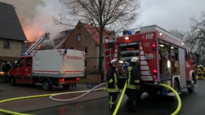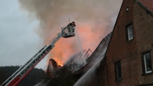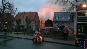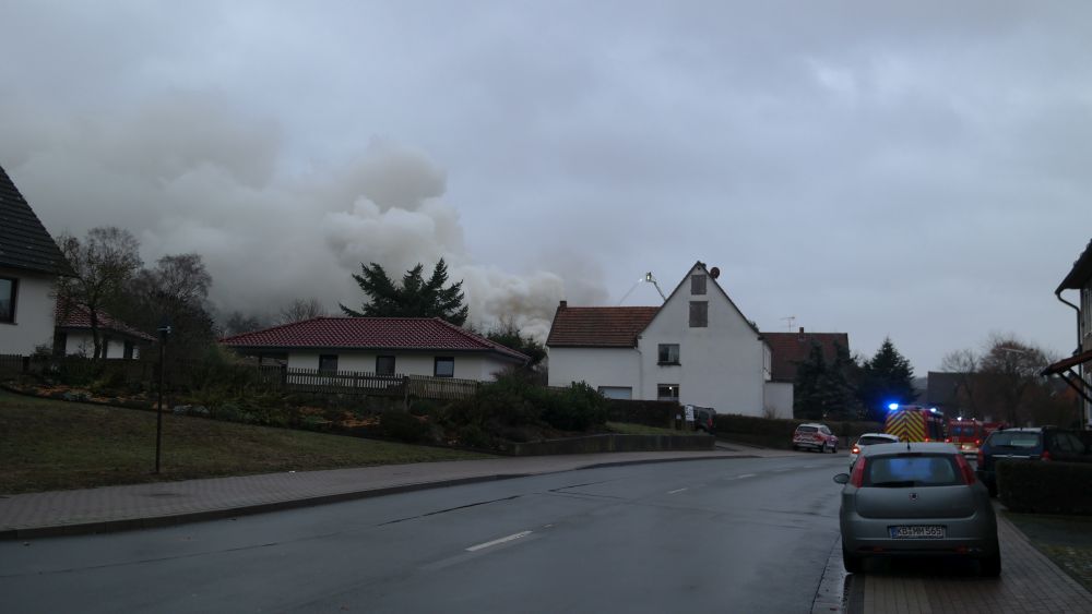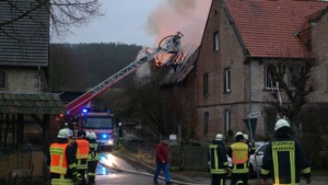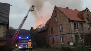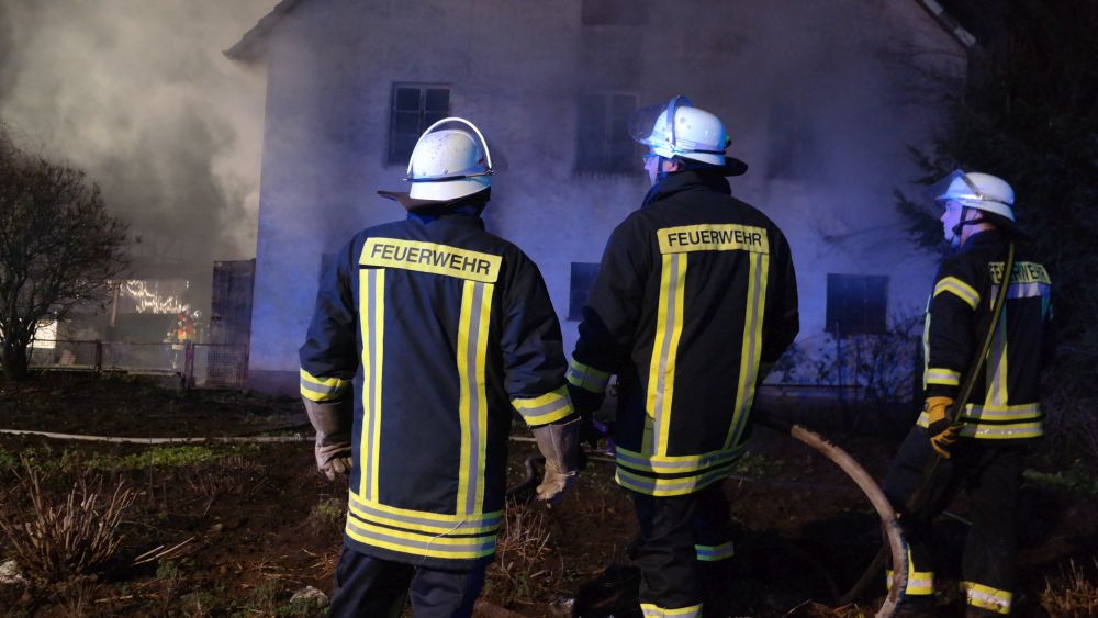 Rund 30 Km weiter in Ehringen sah es dann am frühen Morgen gegen 8.30 Uhr anders aus. Hier stand beim Eintreffen der Feuerwehr eine Scheune bereits im Vollbrand. Die Löschmaßnahmen gestalteten sich schwierig, auf Grund der engen Bebauung. Mit rund 120 Einsatzkräften und zwei Drehleitern konnten die Flammen schnell eingedämmt werden, dennoch erlitt die Scheune einen Totalschaden. Hilfreich war hier insbesondere die gute Wasserversorgung, durch einen Bach, der direkt gegenüber des Brandortes verlief. Durch den schnellen Einsatz der Feuerwehr, konnte das angrenzende Wohnhaus gerettet werden. Auch hier wurde zum Glück niemand verletzt. Wie es zu diesem Brand kommen konnte ist aktuell noch unklar.