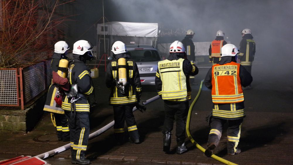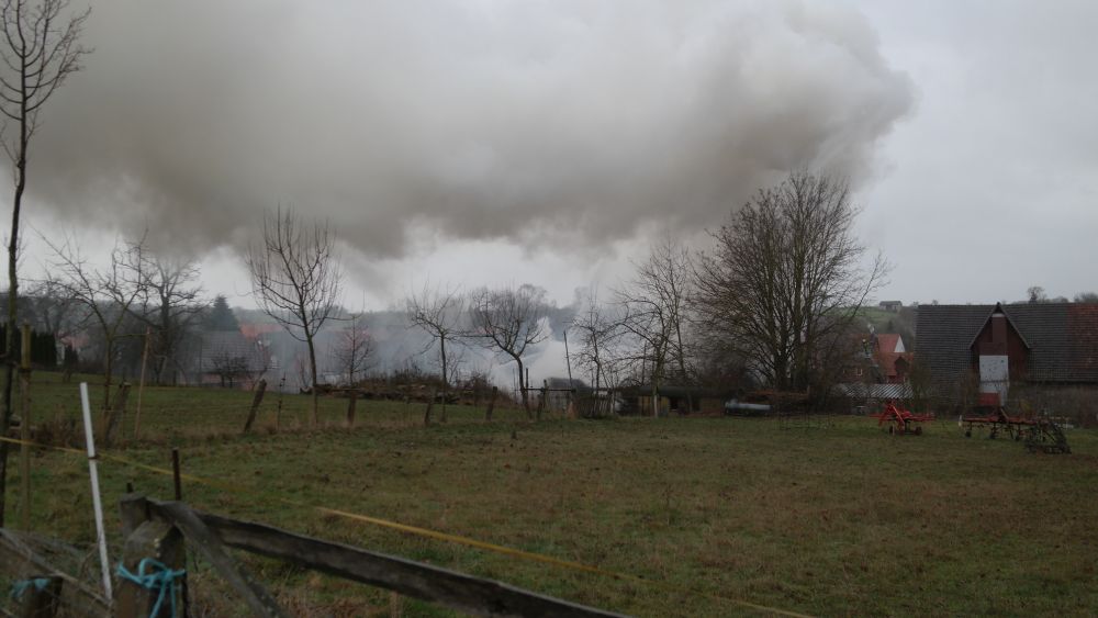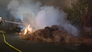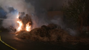 Strothe/Ehringen – Gleich zwei Brände musste die Feuerwehr in Waldeck Frankenberg in der Silvesternacht unter Kontrolle bringen. Kurz nach Mitternacht entdeckte die 53-jährige Hausbesitzerin im Ortsteil Strothe, dass im gegenüberliegenden Wirtschaftsgebäude ein Brand ausgebrochen war, in dem jede Menge Heuballen gelagert waren. Mit einigen Helfern konnten die in einem angrenzenden Stall untergebrachten Kälber in Sicherheit gebracht werden.