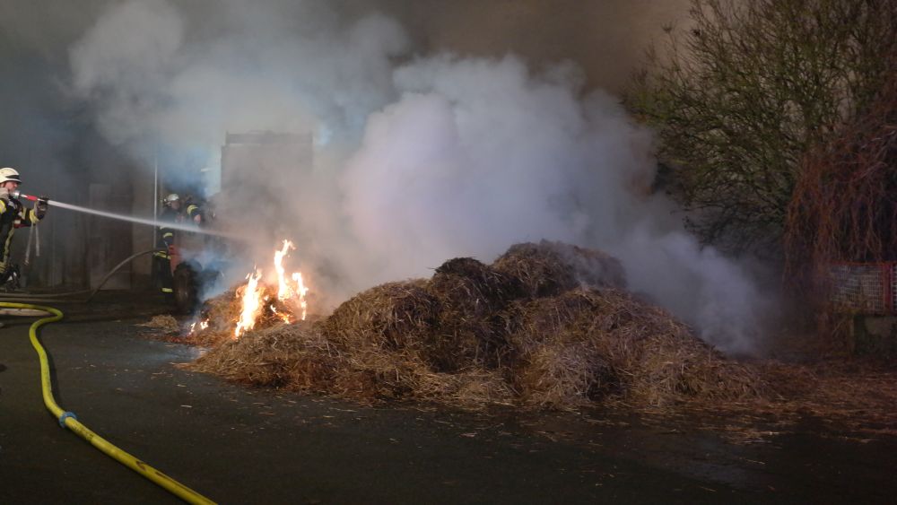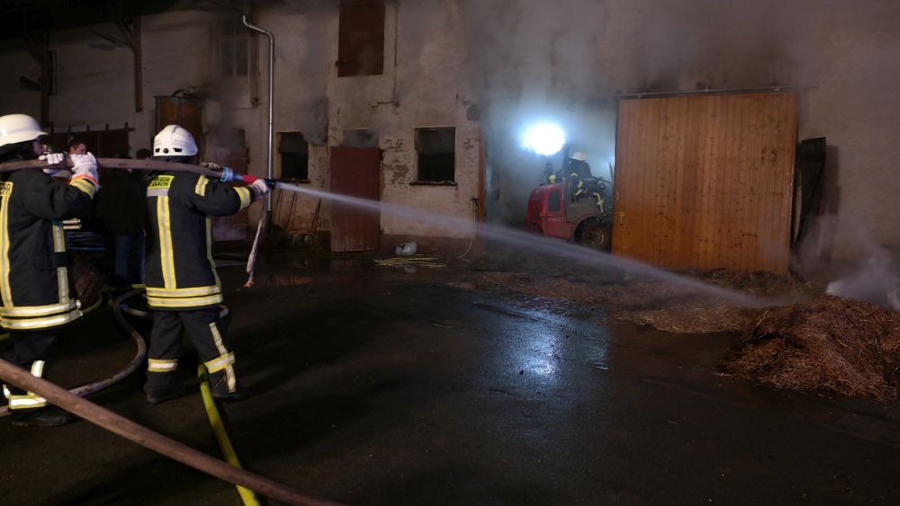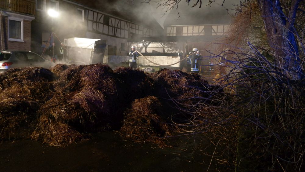 Mit rund 80 Einsatzkräften hat die Feuerwehr den Brand unter Kontrolle gebracht, ohne dass sich ein Großbrand entwickelte. Nach ersten Löschmaßnahmen konnte die Feuerwehr Korbach mit einem Radlader brennende Heuballen aus dem Gebäude holen und gezielt ablöschen. Die Nachlöscharbeiten dauerten jedoch bis in die frühen Morgenstunden. Wie es zu dem Brand kommen konnte und ob möglicherweise ein Feuerwerkskörper für den Brand verantwortlich ist, war noch nicht zu erfahren, verletzt wurde niemand. Die Polizei hat noch in der Nacht die Ermittlungen aufgenommen.