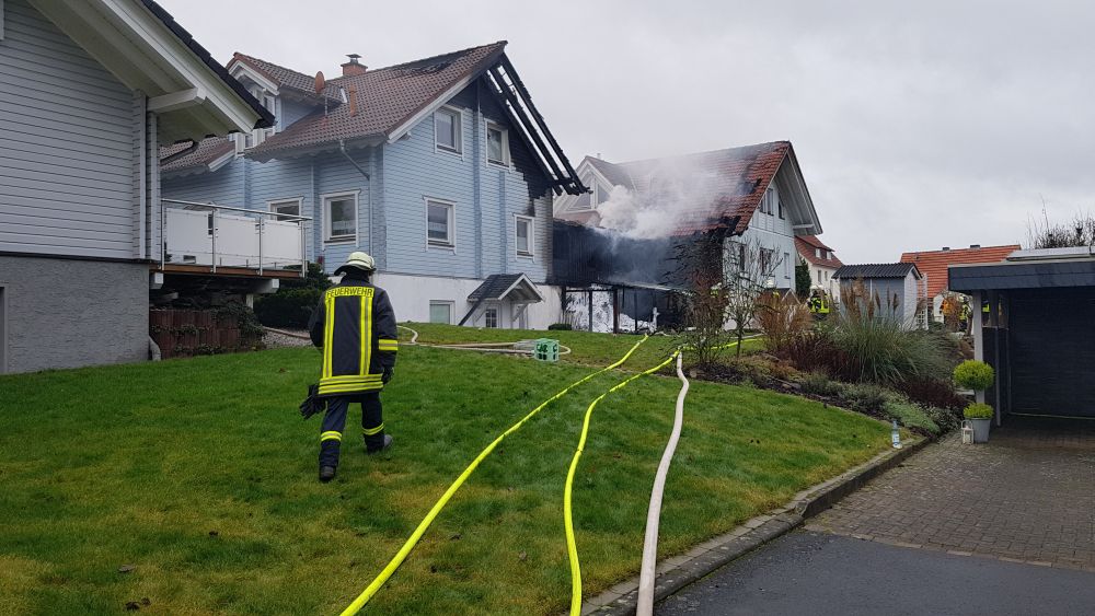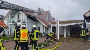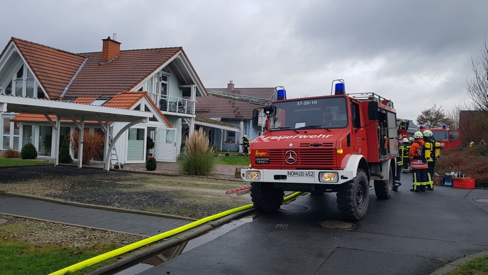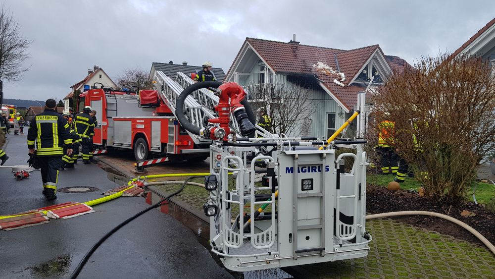 Das Feuer breitete sich auf zwei direkt angrenzende Wohnhäuser und einen Carport aus. Mit Drehleitern aus Nordheim und Hofgeismar sowie 127 Einsatzkräften, konnte die Feuerwehr den Brand schnell unter Kontrolle bringen. Probleme gab es zu Beginn mit der Wasserversorgung, aber auch hier war schnell eine Lösung gefunden. Da sich der Brand auf den Dachbereich beschränkte, wurden die Häuser im Innenbereich nach Angaben von Einsatzleiter Axel Henne weniger beschädigt, sind aber auf Grund der Geruchsbildung vorerst nicht bewohnbar. Alle Bewohner konnten sich selbst in Sicherheit bringen, verletzt wurde zum Glück niemand. Nachbarn versorgten die Einsatzkräfte mit Getränken und kleinen Stärkungen die auch dankbar angenommen wurden. Zum Einsatz kamen neben Polizei und Rettungsdienst die Feuerwehren aus dem Landkreis und aus dem Nachbarland Niedersachsen. Die Polizei hat die Ermittlungen aufgenommen, die Höhe des Sachschadens ist aktuell noch nicht bekannt.
