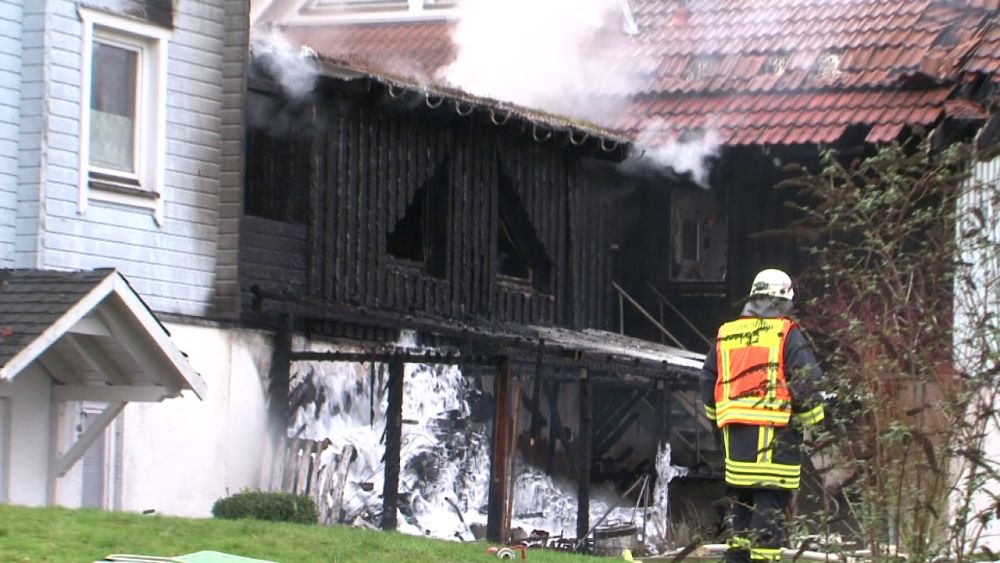 Vernawahlshausen – In Vernawahlshausen nahe der Grenze zu Niedersachsen ist am Sonntagvormittag gegen 11.30 Uhr aus bisher noch ungeklärter Ursache ein Holzschuppen in Brand geraten.