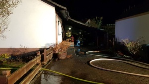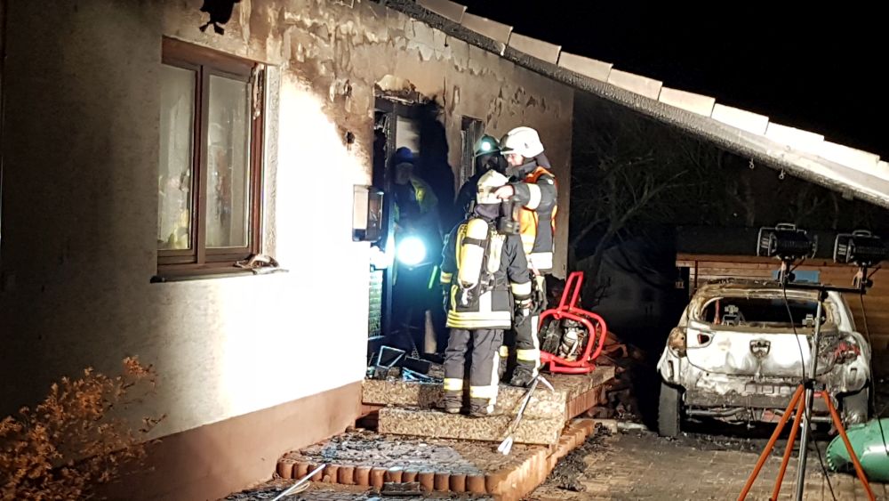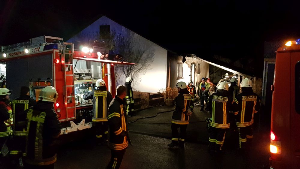 Die Bewohnerin hatte offensichtlich nichts vom Brand mitbekommen und wurde von den Einsatzkräften über den Balkon in Sicherheit gebracht. Sie wurde dem Rettungsdienst übergeben, konnte jedoch unverletzt wieder entlassen werden. Auf Grund der massiven Brandausbreitung wurde für die umliegenden Gemeinden Vollalarm ausgelöst. Durch den schnellen Einsatz der Feuerwehr konnte das Wohnhaus gerettet werden, gilt jedoch vorerst als unbewohnbar. Die Frau kam zunächst bei Verwandten unter. Der im Carport abgestellte PKW wurde bei dem Brand völlig zerstört. Wie es zu dem Brand kommen konnte, ist aktuell noch unbekannt. Die Brandbekämpfung war etwa gegen 5 Uhr abgeschlossen. Zum Einsatz kam die Feuerwehr Wehretal und Umgebung mit rund 70 Einsatzkräften. Nach Angaben der Polizei wird der Sachschaden auf rund 70.000 Euro festgelegt. Die Ermittlungen zur Brandursache wurden aufgenommen.
