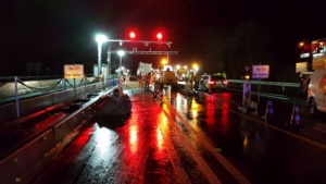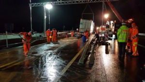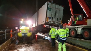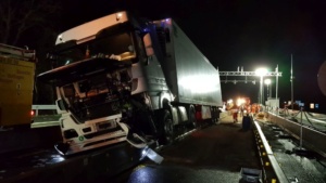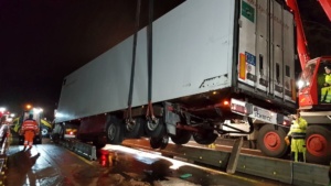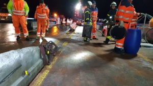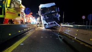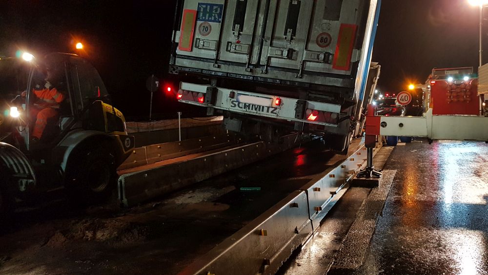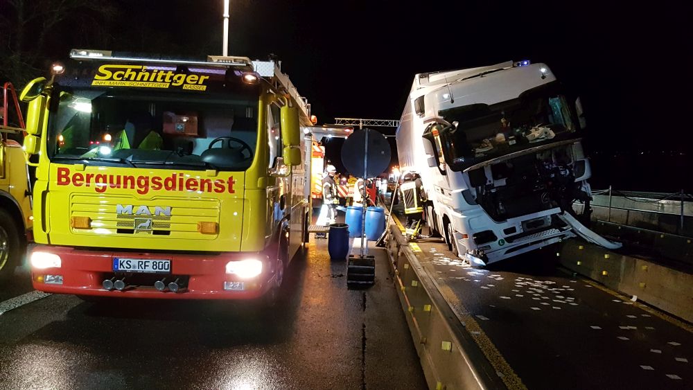 Der Fahrer steuert dann seinen Sattelzug auf eine Fahrbahnbegrenzung zu, fährt auf und zerstört so nicht nur die Baustellenanlage, sondern auch seinen LKW und verursacht daran einem Schaden von rund 80.000 Euro. In wie weit die in der Strasse eingelassene Waage Schaden genommen hat, ist derzeit noch nicht anzusehen. Klären kann dies erst am Sonntagmorgen ein Techniker, so lange bleibt die A44 zunächst komplett gesperrt. Durch den Unfall sind auch jede Menge Betriebsstoffe ausgelaufen, die von der Feuerwehr Kassel aufgenommen werden mussten. Ein Bergungsunternehmen wurde beauftragt, den LKW anzuheben und wieder auf die richtige Fahrspur zu setzen. Der Auflieger war zum Glück nicht beschädigt, denn er hatte 20 Tonnen Fleisch geladen, dessen Kühlkette nicht unterbrochen werden darf. Wie lange die Autobahn nun noch gesperrt bleiben muss, konnten die Verantwortlichen noch nicht sagen.