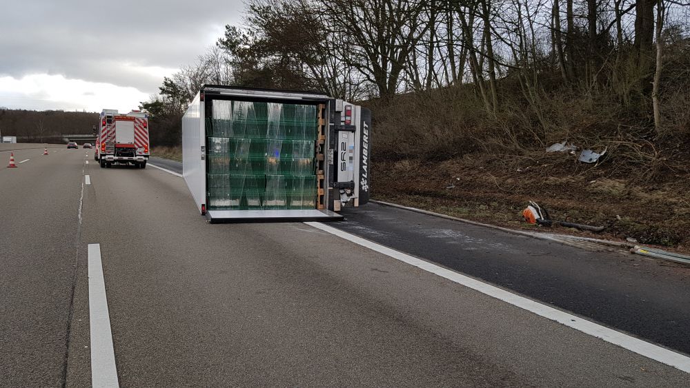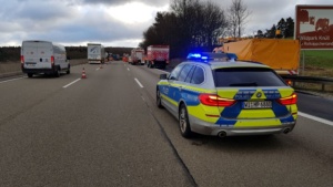 Der Mann war nicht in seinem Fahrzeug eingeklemmt und wurde nach einer Erstversorgung an der Unfallstelle in ein Krankenhaus eingeliefert. Der LKW hatte Verpackungsmaterial geladen, welches nicht auf die Fahrbahn fiel. Aktuell ist die rechte Fahrspur gesperrt, es kommt zu erheblichen Behinderungen. Die Feuerwehr Homberg sicherte mit 18 Einsatzkräften die Unfallstelle ab. Betriebstoffe sind nicht ausgelaufen. Der Sachschaden wird nach Angaben der Polizei auf rund 30.000 Euro geschätzt.