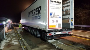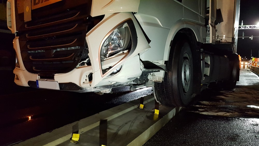 Kassel – Am Montagabend befuhr ein 52-jähriger Mann aus Bulgarien mit seinem Sattelzug die A44 aus Richtung Dortmund kommend in Fahrtrichtung Kassel. Zwischen der Anschlussstelle Wilhelmshöhe und dem Autobahnkreuz Kassel-West übersah der 52-Jährige mehrfach das Verbotszeichen für Fahrzeuge über 3,5t, welches für die Strecke zwischen dem Autobahnkreuz Kassel-West und dem Autobahndreieck Kassel-Süd gilt. Gegen 21:10 Uhr bemerkte er die in diesem Streckenabschnitt vor der Bergshäuser Brücke aufgestellten Betongleitwände zu spät und fuhr auf diese auf.