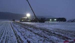 Der am Mittwoch aus Sicherheitsgründen gelandete Tiger Kampfhubschrauber, musste heute teilweise demontiert, verladen und schließlich abtransportiert werden. Bei einer Tiefflugübung die in bis zu 10 Fuß, also in rund drei Meter Höhe durchgeführt werden, hatten die Heckrotorblätter beim Rückwärtsflug einen Baum berührt und der Hubschrauber landete anschließend in einem Acker.