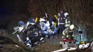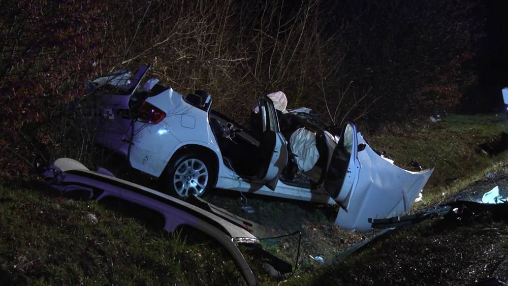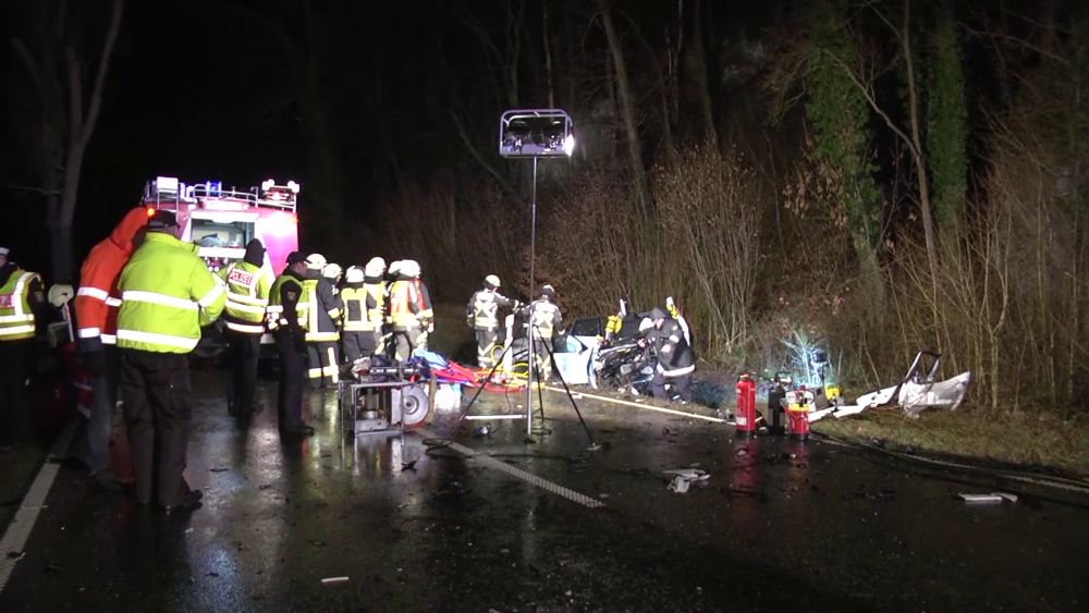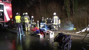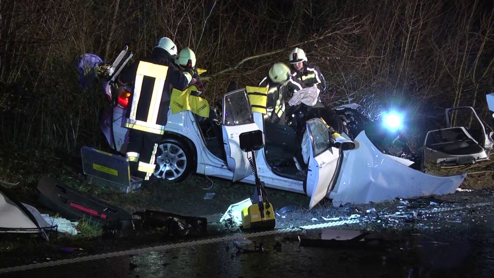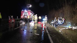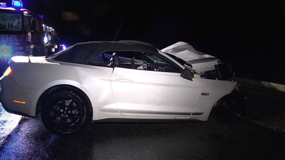 Durch die Wucht des Aufpralls wurde der BMW völlig zerfetzt und nach rechts in einen Flutgraben geschleudert. Die Frau wurde massiv in Ihrem Fahrzeug eingeklemmt. Wie die Feuerwehr mitteilte bereitete der stabile Vorbau des SUVs bei der Befreiung der Verletzten Person massive Schwierigkeiten. Die schwerstverletzte Fahrerin wurde mit dem Rettungswagen und Notarztbegleitung nach einer Erstversorgung an der Unfallstelle in ein Krankenhaus eingeliefert. Der verletzte Fahrer des Mustangs wurde von der Besatzung eines Rettungswagens versorgt und ebenfalls in ein Krankenhaus eingeliefert. Um die genaue Unfallursache feststellen zu können, wurde ein Gutachter in die Ermittlungen einbezogen. Während der Rettungs- und Bergungsarbeiten musste die Bundesstraße für mehrere Stunden voll gesperrt werden. Über die Höhe des Sachschadens konnten noch keine Angaben gemacht werden, an beiden Fahrzeugen entstand jedoch ein wirtschaftlicher Totalschaden.