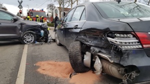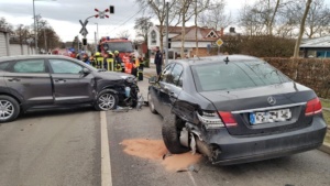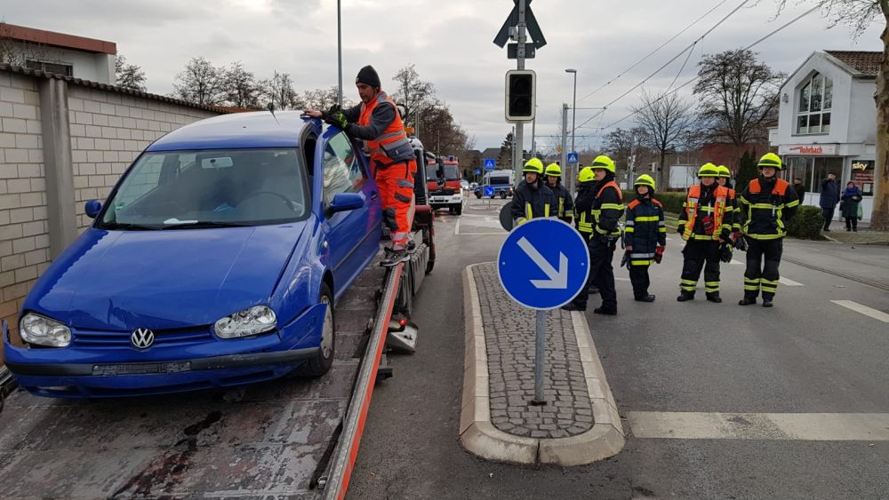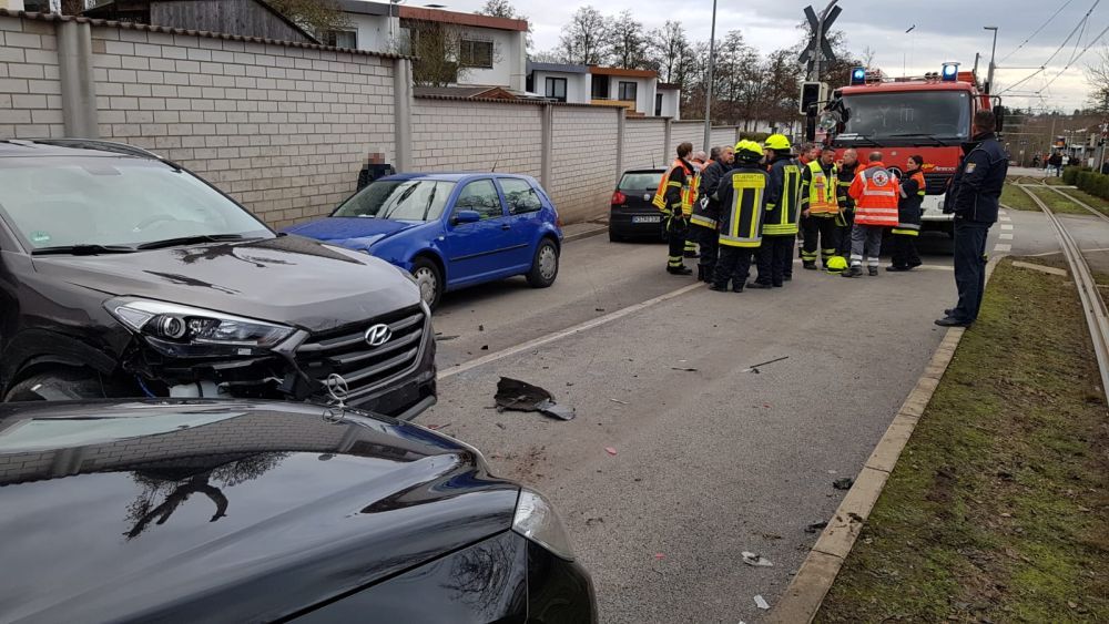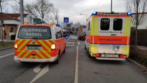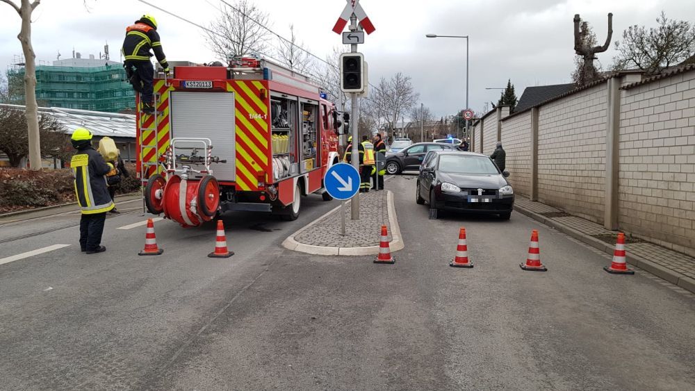 Hier waren zwei Personen eingeklemmt die von der Feuerwehr Vellmar befreit werden mussten. Drei Personen wurden bei dem Unfall verletzt und nach einer Erstversorgung an der Unfallstelle in ein Krankenhaus eingeliefert. Auch ein Hund befand sich im Fahrzeug über dessen Zustand nichts zu erfahren war. Die Feuerwehr war mit insgesamt 22 Einsatzkräften vor Ort, sowie drei RTW, ein NEF und drei Streifenwagen der Polizei. Zu Beginn des Einsatzes war von einer beteiligten Straßenbahn die Rede, was sich jedoch nicht bewahrheitete. Lediglich der Bahnverkehr war während des Einsatzes beeinträchtigt.