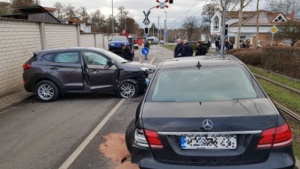 Vellmar – Zu einem Verkehrsunfall mit Personenschaden kam es am Donnerstagnachmittag gegen 15.30 Uhr in Vellmar auf der Rathhauskreuzung. Aus bisher nicht geklärter Ursache sind insgesamt vier Fahrzeuge zusammengestoßen. Der Aufprall war so heftig, dass ein Fahrzeug auf der Seite zum liegen kam und aufgestellt werden musste.