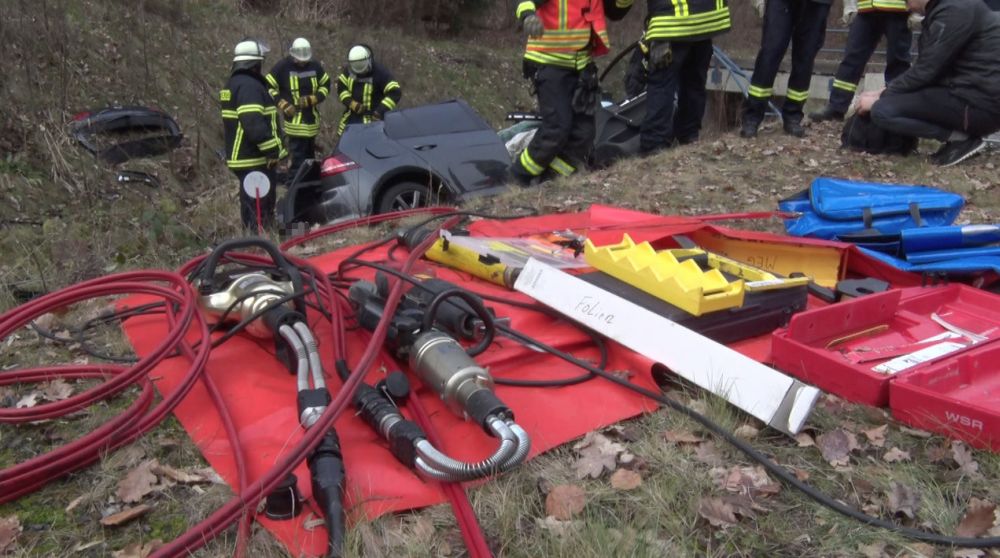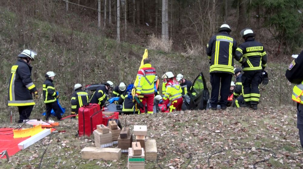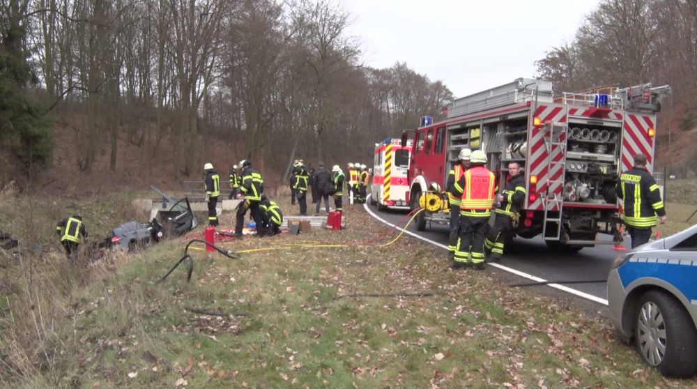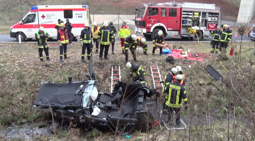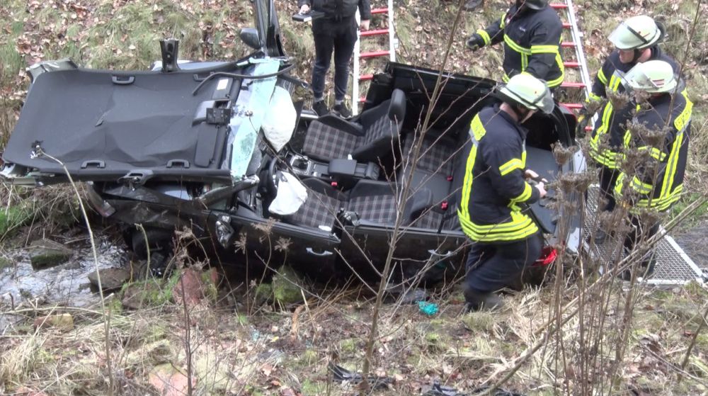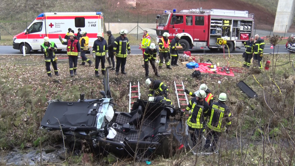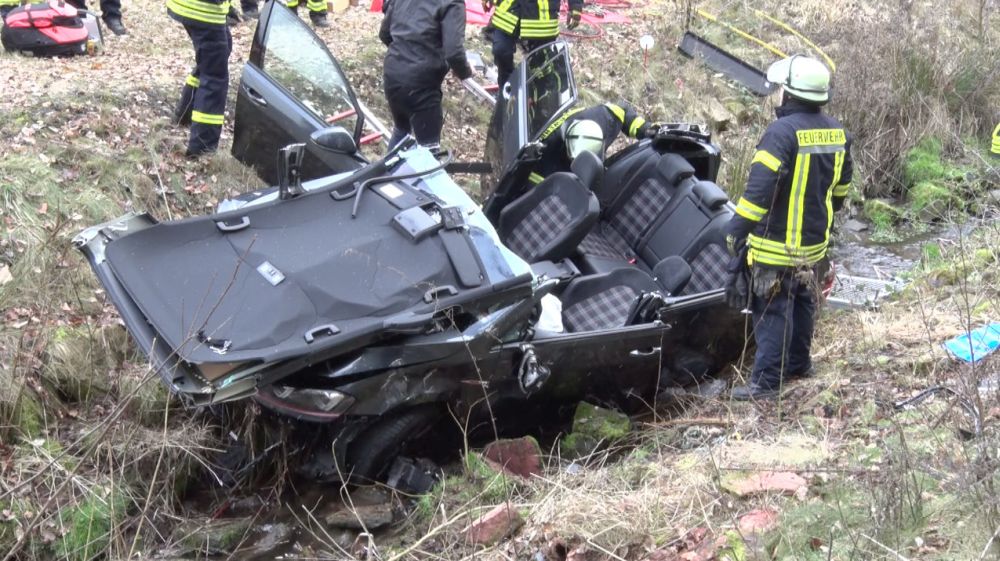 Für die angeforderten Rettungskräfte war es eine schwierige Rettung. Der Felsberger wurde durch den Unfall in seinem Fahrzeug eingeklemmt. Die Feuerwehr musste zunächst das schräg im Bach liegende Fahrzeug sichern. Im Verlauf wurde mit schwerem hydraulischen Geräten das Dach des Fahrzeuges entfernt, um eine Patientenschonende Rettung vornehmen zu können. Der Mann wurde schwerverletzt in ein Krankenhaus nach Kassel gebracht. Da das Fahrzeug in einem Bach zum Stillstand kam, wurde seitens der Feuerwehr unweit der Einsatzstelle eine Ölsperre aufgebaut. Am Fahrzeug entstand Totalschaden in Höhe von rund 40.000 Euro. Neben der Polizei waren ein Notarzt und ein Rettungswagen, die Feuerwehren aus Melsungen und Felsberg sowie der Rettungshubschrauber Christoph-7 vor Ort im Einsatz. Die L 3222 war während der Rettungsmaßnahmen für rund ein Stunde voll gesperrt.
