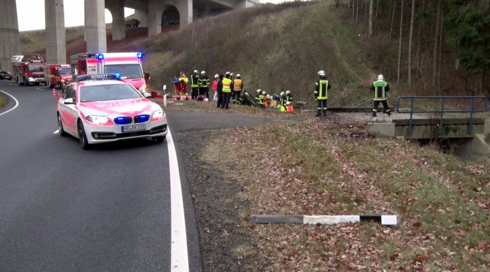 Felsberg – Eine schwerverletzte Person ist das Resultat eines schweren Alleinunfalls am Dienstagvormittag zwischen Melgershausen und Felsberg. Ein 29-jähriger Felsberger war in Richtung Melgershausen unterwegs, als er aus bislang ungeklärten Umständen in einer Linkskurve unterhalb der Helderbachtalbrücke nach rechts von der Fahrbahn abkam. Dabei durchbrach der junge Mann ein Brückengeländer, überschlug sich und kam auf den Räder stehend in einem Bach zum Stillstand.