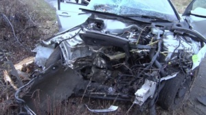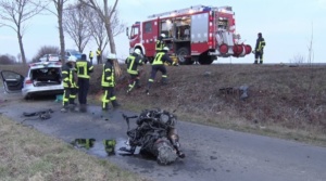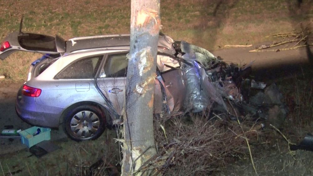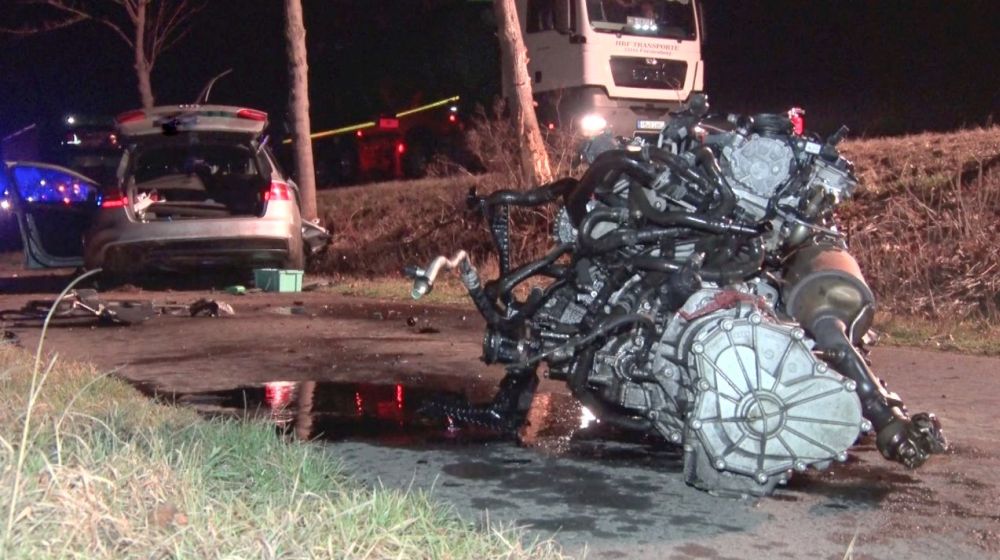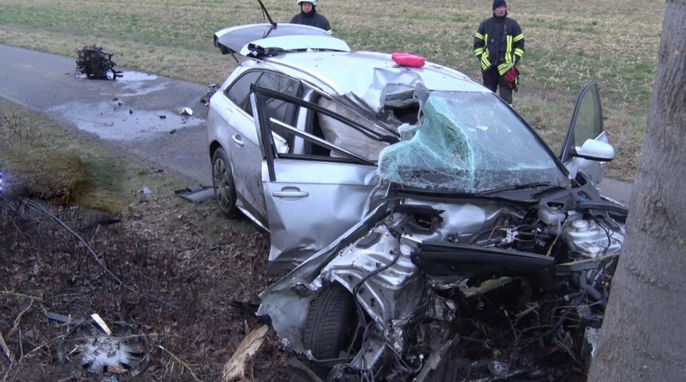 Durch den harten Aufprall wurde der Kleinwagen der Felsbergerin nach rechts von der Fahrbahn abgewiesen, schleuderte eine Böschung hinunter, überschlug sich und kam rund 30 Meter abseits der Fahrbahn zum stehen. Ihr Fahrzeug wurde dabei vollständig am Heck und in der Front zerstört. Der Homberger Verkehrsteilnehmer wurde durch den Aufprall nach links von der Fahrbahn abgewiesen. Der Mann rutschte mit seinem Fahrzeug quer über die Fahrbahn und krachte mit der Beifahrerseite gegen einen Baum. Der Aufprall war so heftig, dass sich das Fahrzeug um 180 Grad drehte und der Motorblock herausgerissen wurde. Völlig zerstört kam das Fahrzeug auf einem angrenzenden Radweg zum stehen. Während die Felsbergerin ohne technische Hilfe schwer verletzt aus ihrem Fahrzeug befreit werden konnte, wurde der Homberger im Fahrzeug eingeklemmt. Obwohl die Rettungskräfte schnell vor Ort waren und den Mann aus seinem völlig zerstörten Fahrzeug befreit hatten, kam für den 35-jährigen Homberger und seinen Hund jede Hilfe zu spät. Die Felsbergerin wurde vom Rettungsdienst versorgt und in ein Kasseler Krankenhaus gebracht. Zur Ermittlung der Unfallursache wurde ein Gutachter der DEKRA zur Unfallstelle bestellt. Während der Rettungs-, Bergungs- und Gutachter Maßnahmen war die Bundesstraße für rund vier Stunden voll gesperrt. Im Einsatz waren die Polizei, die Feuerwehr Fritzlar, zwei Rettungswagen, zwei Notärzte sowie ein Gutachter.