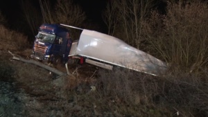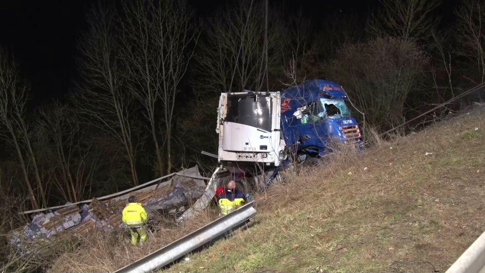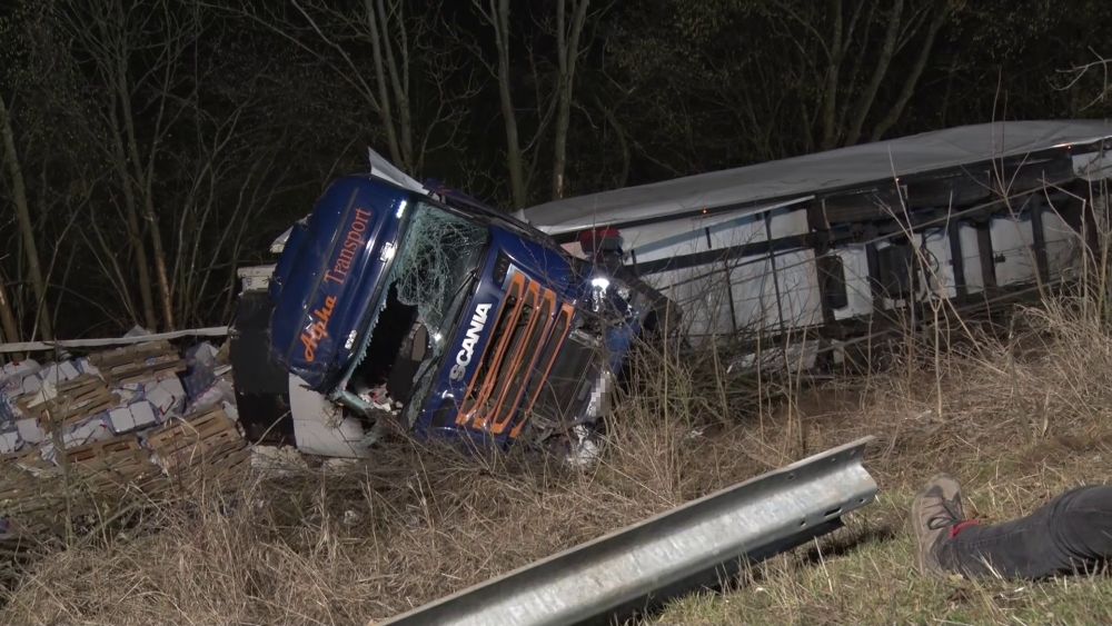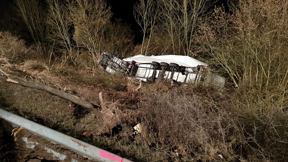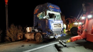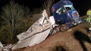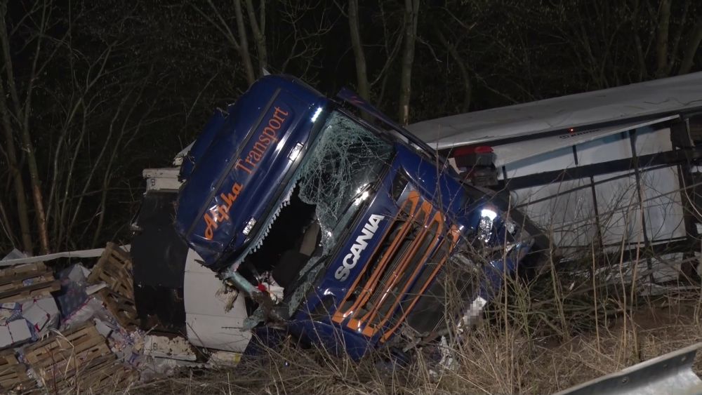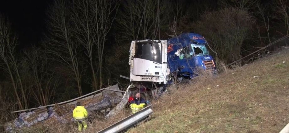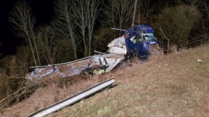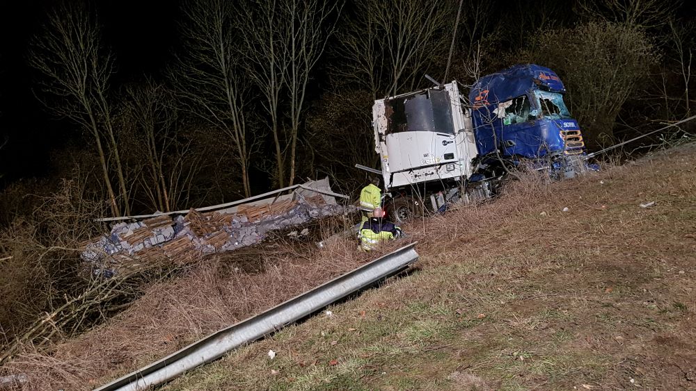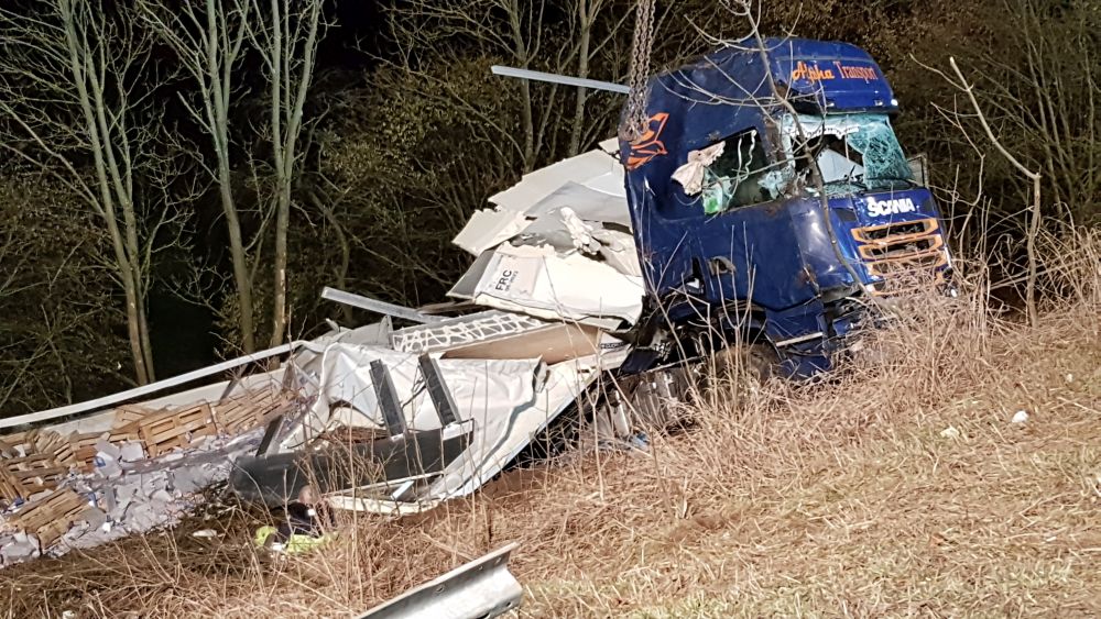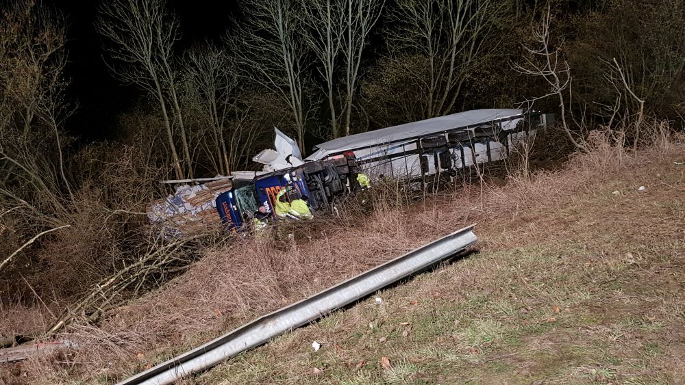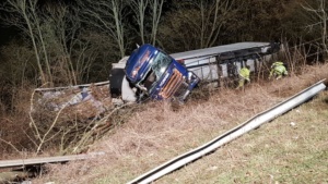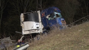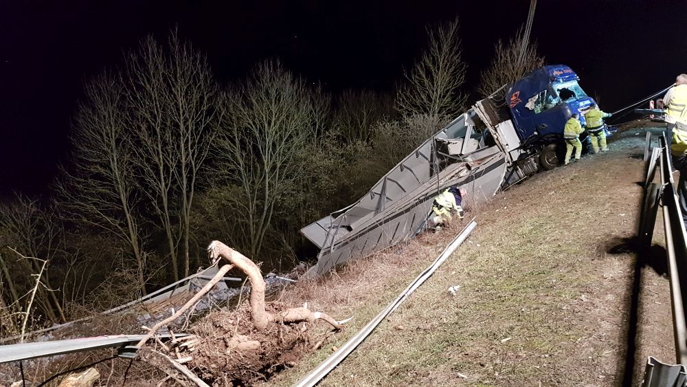 Zierenberg – In der Nacht von Donnerstag auf Freitag kam es auf der A44 zwischen Zierenberg und Breuna zu der angekündigten Bergung des am Vortag verunglückten LKW (- wir berichteten -). Aus bisher noch nicht geklärter Ursache kam der Fahrer eines Sattelzuges von der Fahrbahn ab und stürzte mehrere Meter tief eine Böschung hinunter. Der 53-jährige Fahrer aus Spremberg war in seinem Fahrerhaus eingeschlossen und konnte sich nicht selbst befeien.