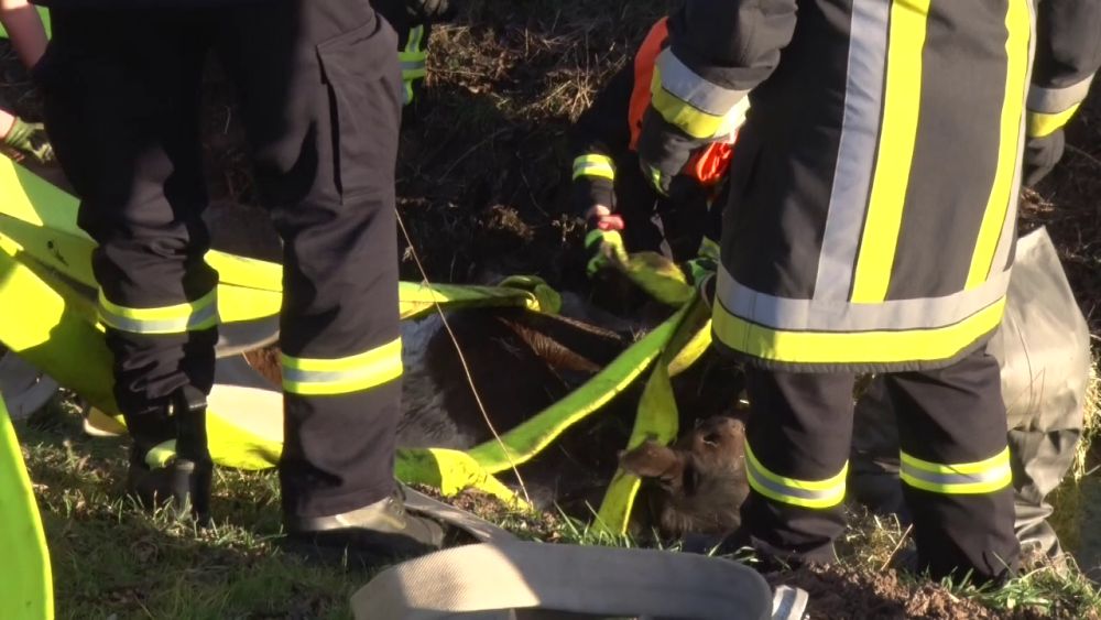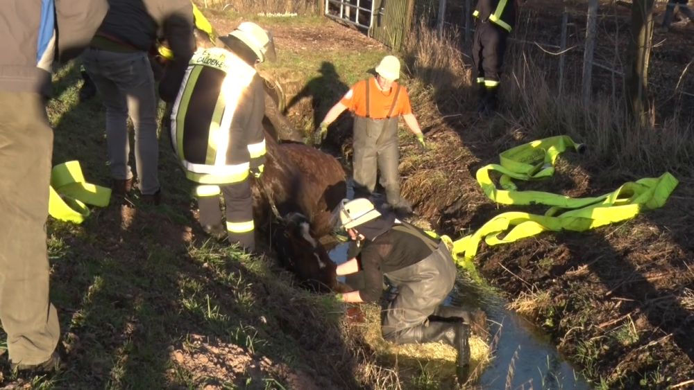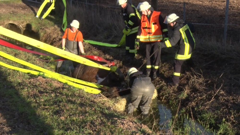 Feuerwehr rettet Pferd aus Flutgraben in Ehrsten (Video)