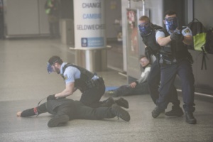 Frankfurt – Bundes- und Landespolizei führten in der Nacht vom 27. auf den 28. Februar gemeinsam mit dem Zoll erfolgreich eine Anti-Terror-Übung am Frankfurter Flughafen durch. Wesentliche Übungsziele der rund 1.000 Teilnehmer waren das Training der ersten polizeilichen Maßnahmen in lebensbedrohlichen Einsatzlagen sowie die weitere Intensivierung und Optimierung der Zusammenarbeit der Sicherheitsbehörden am Flughafen. Die hieraus gewonnenen Erkenntnisse fließen in die Weiterentwicklung bereits bestehender Sicherheitskonzepte ein.