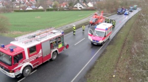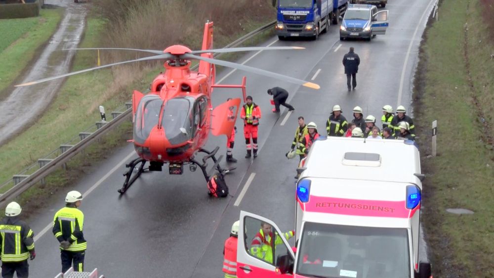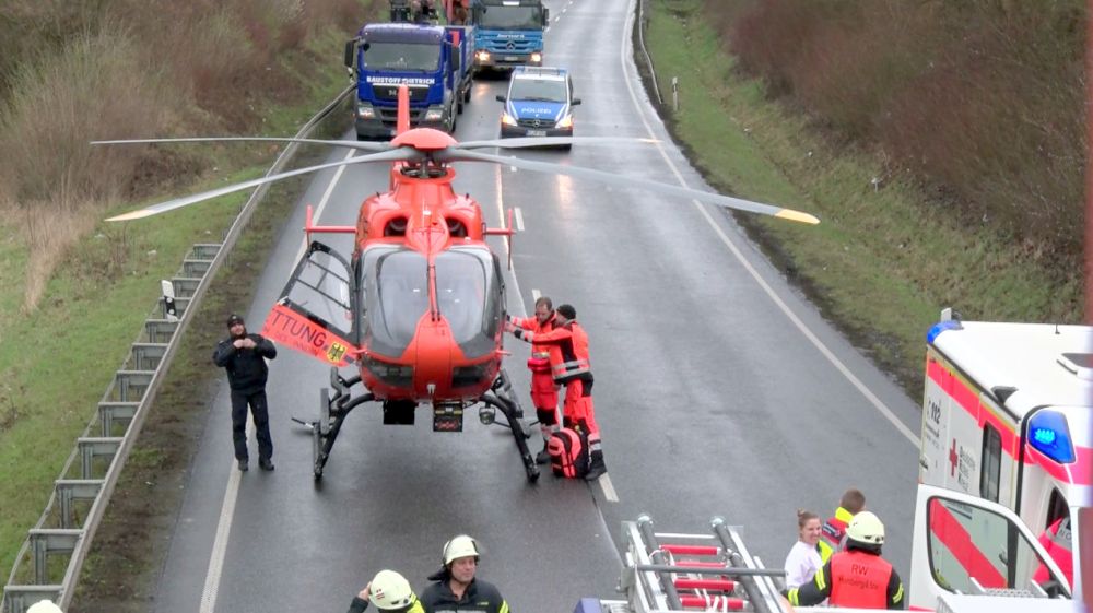 Dort krachte der Senior so heftig vor einen Baum, dass beide Airbags im Fahrzeug aufgingen. Anschließend rollte das Fahrzeug den steilen Hang zur Bundesstraße hinunter und kam schwer beschädigt am Fahrbahnrand zum Stillstand. Bis zum Eintreffen der Einsatzkräfte kümmerten sich Ersthelfer um den Mann. Die herbeigeeilten Einsatzkräfte der Feuerwehr und des Rettungsdienstes versorgten den Verletzten zunächst im Fahrzeug, bevor er mit dem Rettungshubschrauber Christoph-7 in ein Kasseler Krankenhaus geflogen wurde. Glücklicherweise wurde der 77 Jährige nicht in seinem Fahrzeug eingeklemmt. Ob der Unfall einen medizinischen Hintergrund hatte oder andere Umstände zu dem Unfall führten, blieb zunächst unklar. Ein Gutachter wurde Unfallstelle bestellt. Am Fahrzeug entstand wirtschaftlicher Totalschaden. Die Bundesstraße war während der Rettungs- und Gutachtermaßnahmen in beide Richtungen gesperrt. (mpu)