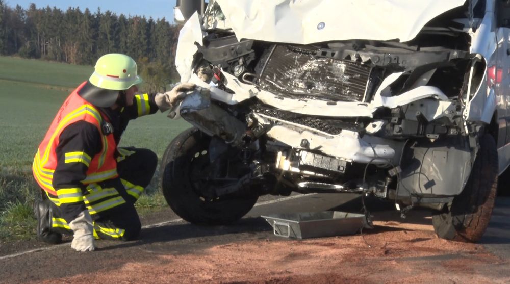 Ein 54-jähriger Fahrer eines Sprinters, der ebenfalls auf dem Weg von Züschen in Richtung Fritzlar war, übersah wegen der Sonne vermutlich die Unfallstelle und krachte ungebremst in das Heck der Landwirtschaftlichen Maschine. Während sich der 20 Jährige mit einem Sprung zur Seite noch rechtzeitig aus den Gefahrenbereich retten konnte, wurde der Schlepperfahrer von seinem Fahrzeug erfasst. Der Traktor hob durch den Aufprall ab, krachte in das zuvor verunglückte Fahrzeug im Graben und begrub den Landwirt mit dem linken Vorderrad unter sich. Obwohl sich der Fahrer des Sprinters bei dem Unfall selbst verletzte, konnte er den Schlepper von dem Landwirt herunterfahren. Beide Verletzten kamen in ein nahegelegenes Krankenhaus. Während der Rettungs- und Bergungsmaßnahmen war L3218 voll gesperrt. Neben der Feuerwehr waren zwei Rettungswagen, ein Notarzt und die Polizei Fritzlar vor Ort im Einsatz. Den Sachschaden beziffert die Polizei auf rund 30000 Euro.