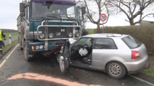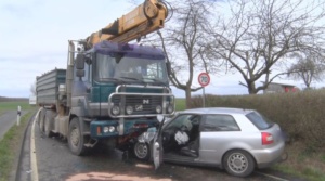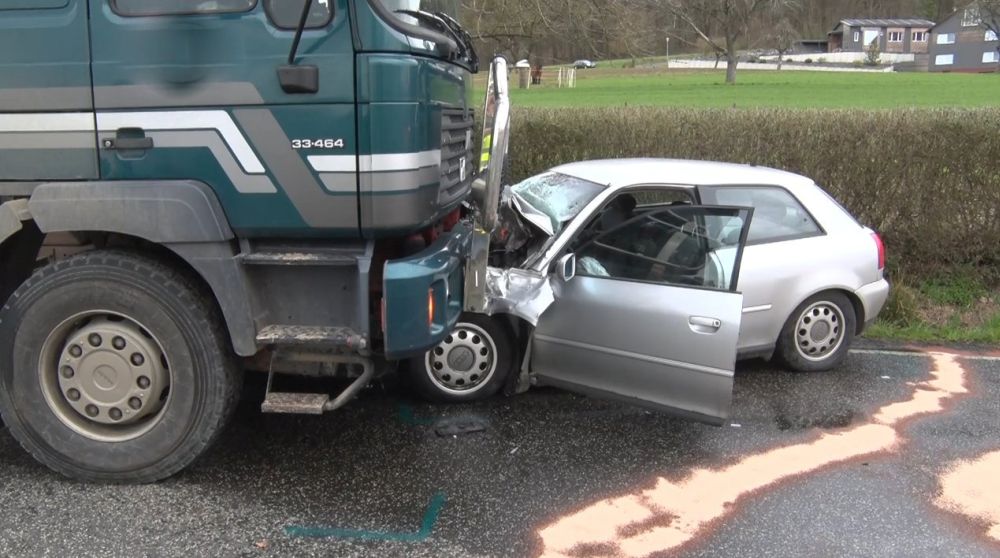 Frielendorf – Schwere, aber glücklicherweise keine lebensbedrohlichen Verletzungen, zog sich ein 40-jähriger Mann aus Frielendorf zu, als er bei Todenhausen frontal mit einem LKW kollidierte. Aus bislang ungeklärten Umständen geriet der Mann auf Höhe des Ortsschildes in Fahrtrichtung Neuenhain mit seinem Fahrzeug auf die Gegenfahrbahn. Dort kollidierte er mit einem mit Brennholzbeladenen LKW der von einem 56-jährigen Mann aus Jesberg gesteuert wurde.