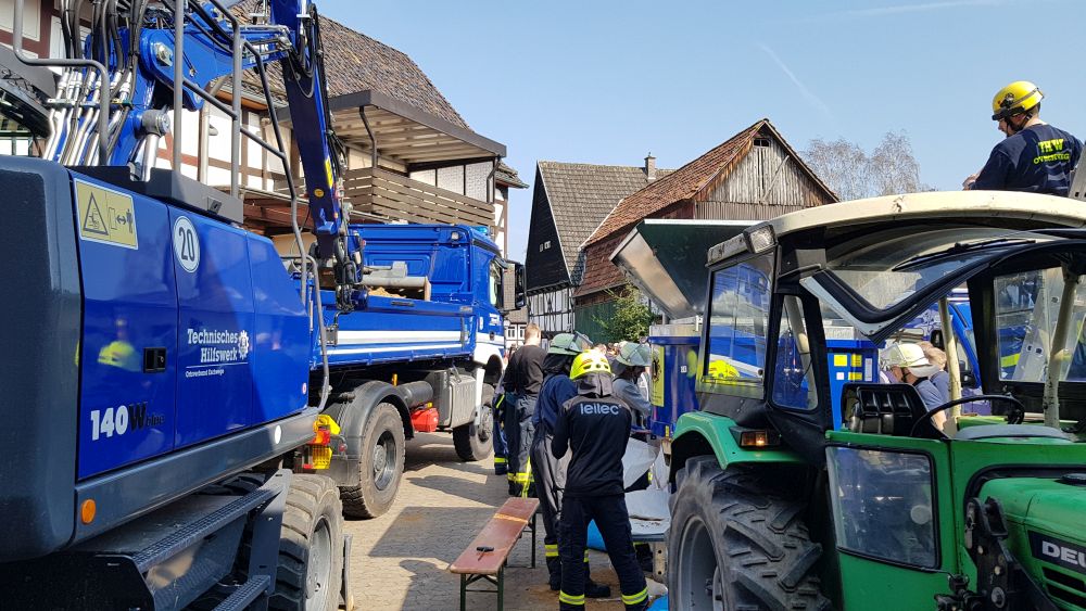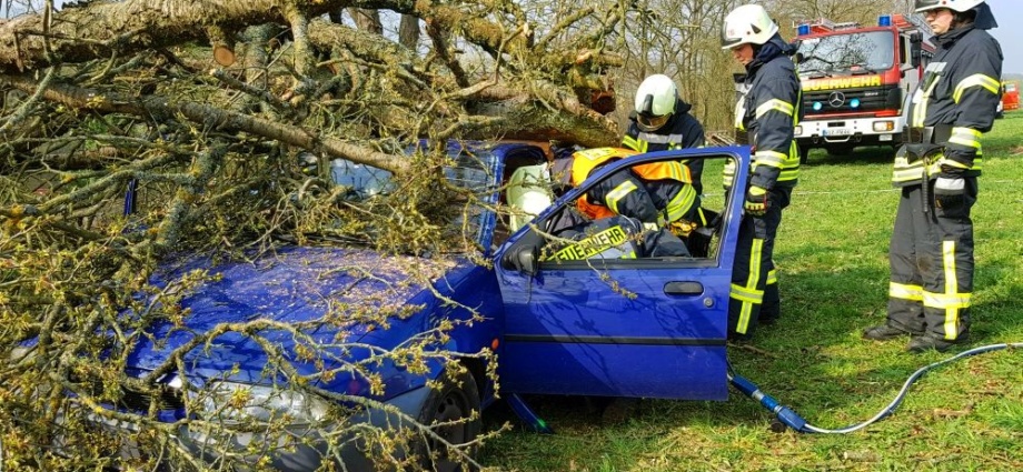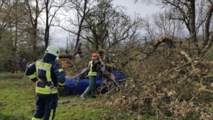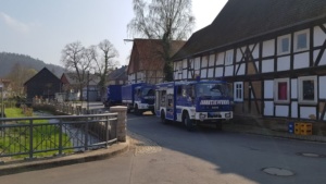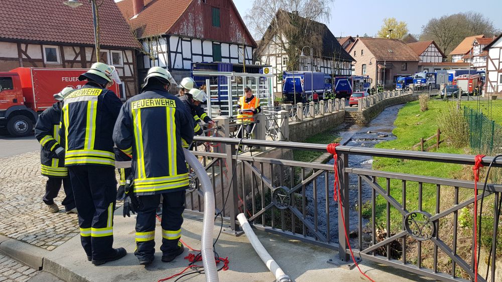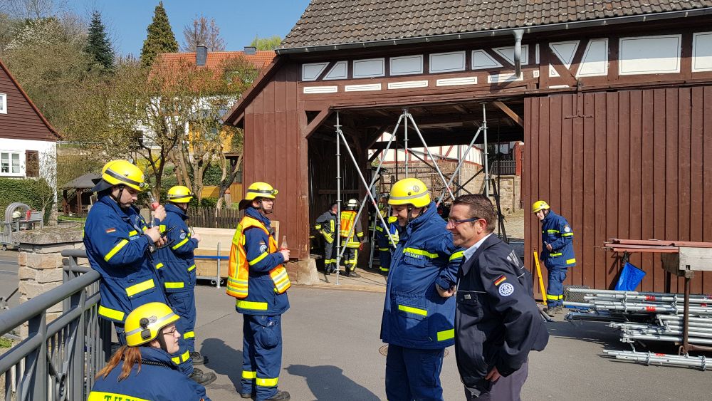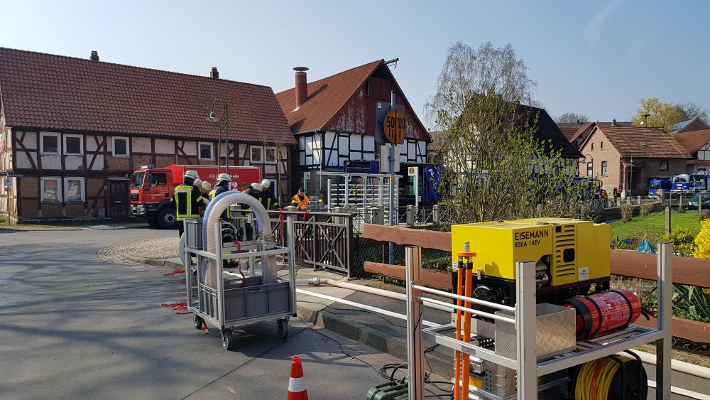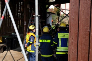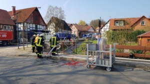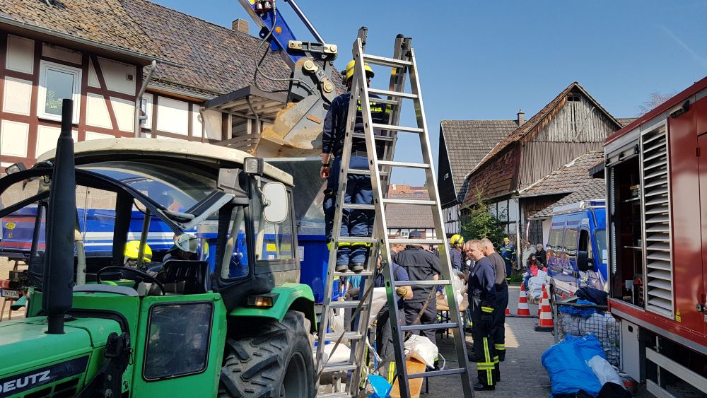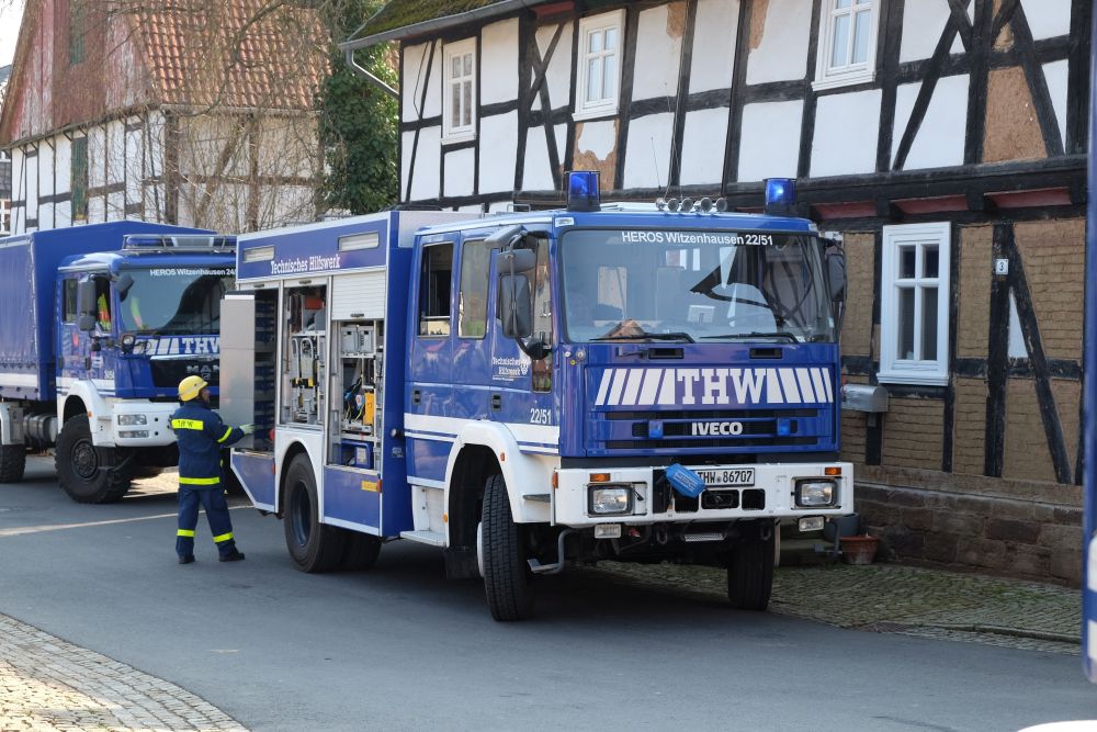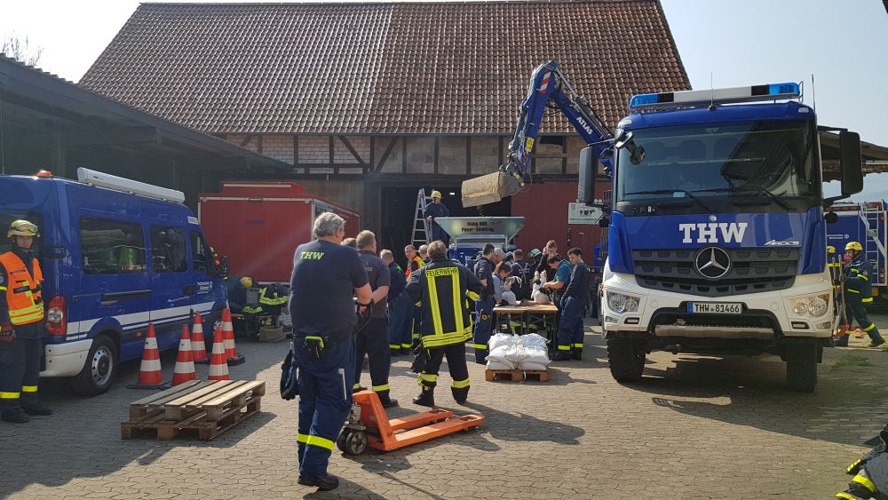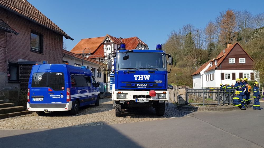Witzenhausen – Am Samstagvormittag kam es in Witzenhausen im Ortteil Blickershausen zu einer großen Feuerwehr Übung. Angenommen wurde das entladen einer Gewitterzelle direkt über dem Ort. Es kam zu Blitzeinschlägen, verletzten Personen, umgestürzten Bäumen, Hochwasser, eben alles was eine solche Katastrophe mit sich bringt. Mit rund 275 Einsatzkräften von Feuerwehr, THW, DLRG und DRK wurden die Einsatzstellen abgearbeitet. Unterspülte Gebäude mussten gesichert werden, um einen Einsturz zu verhindern.