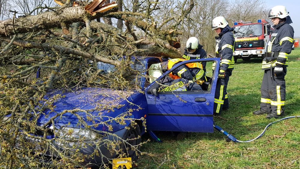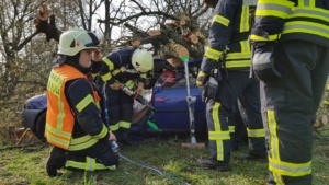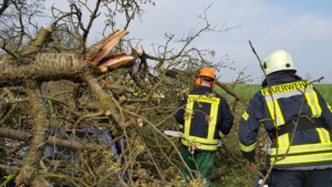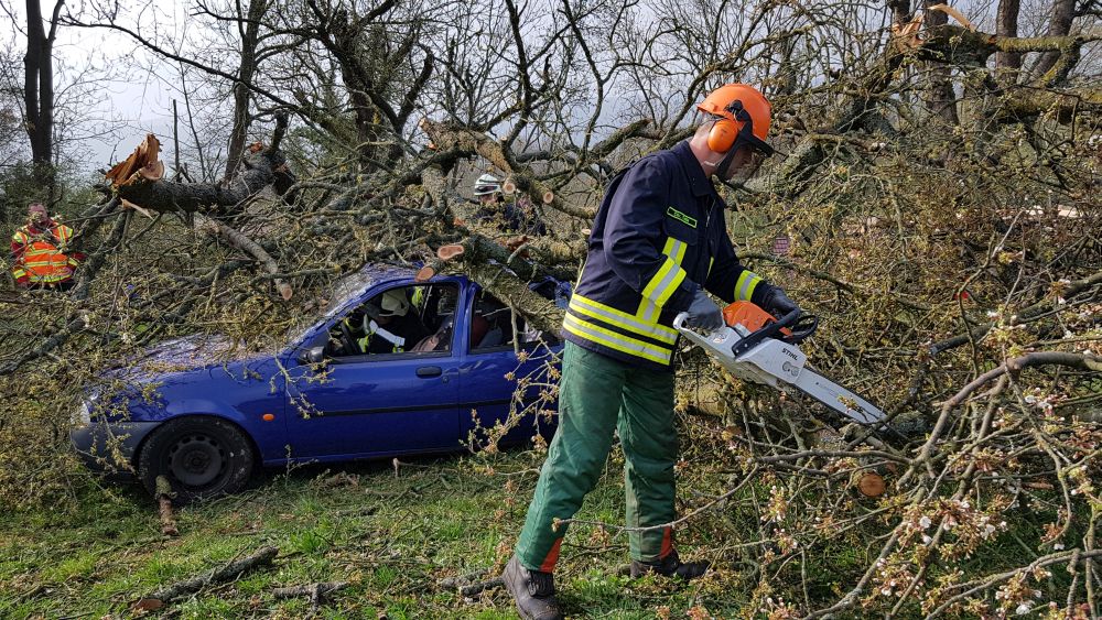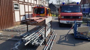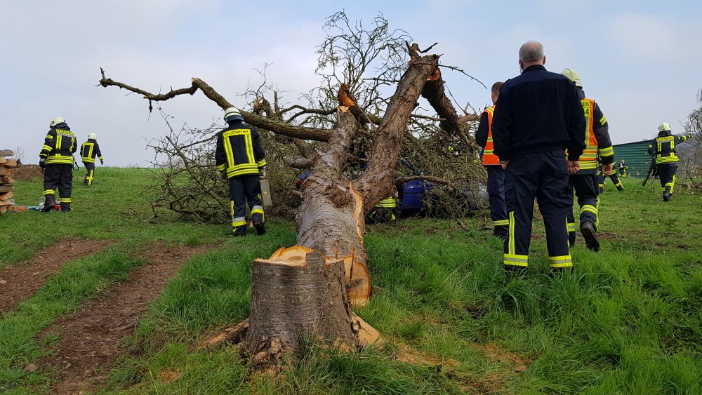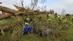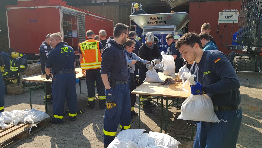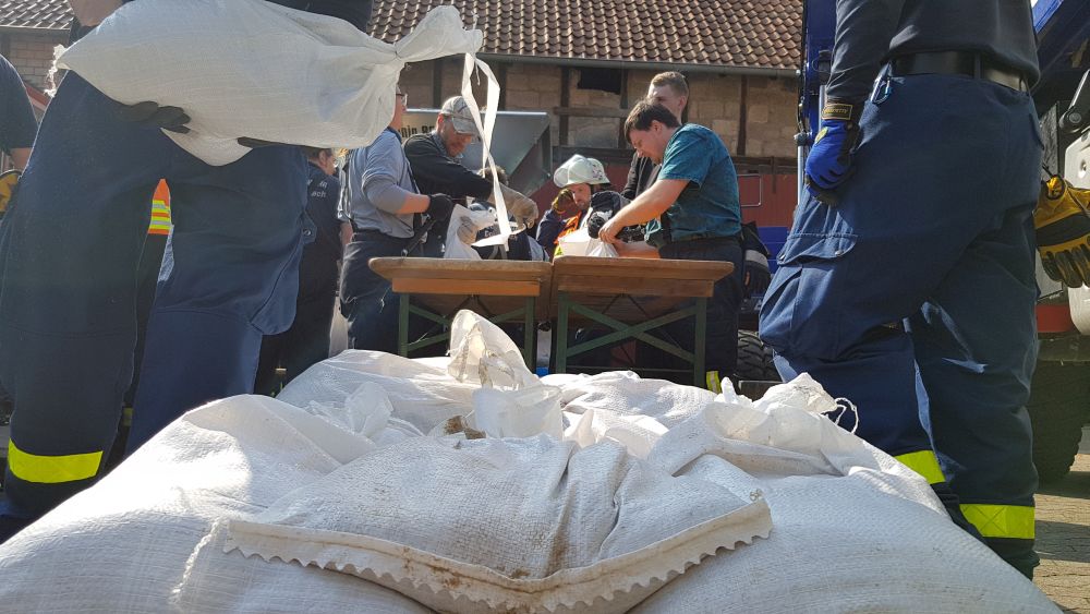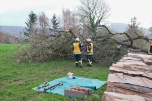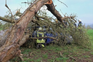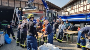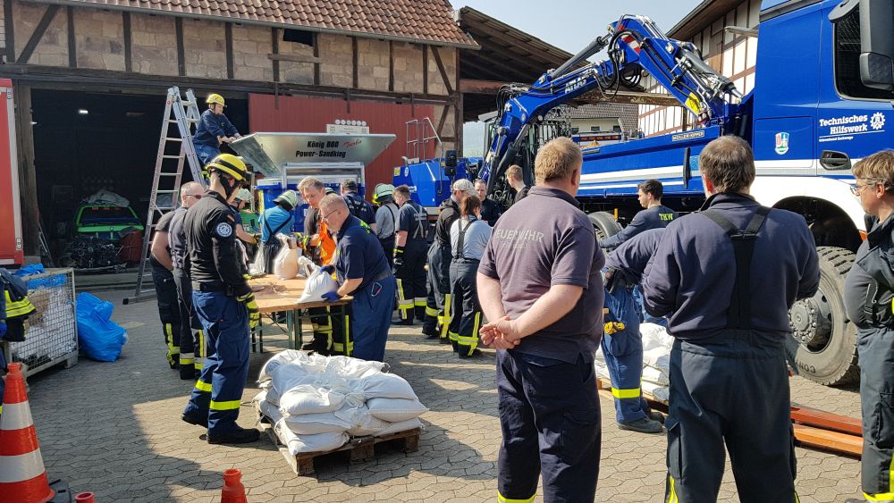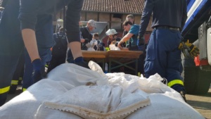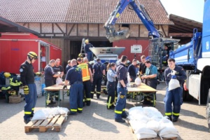 Umgestürzte Bäume sperrten Personen in Ihren Fahrzeugen ein, hier musste die Feuerwehr zunächst die Äste entfernen, dann die dicken Stämme zersägen und zur Seite schaffen. Erst dann konnten die Verletzten aus ihren Gefängnissen befreit werden. Insgesamt mussten 28 Einsatzstellen nach und nach abgearbeitet werden. Auch eine Sandfüllstation wurde eingerichtet, um mit den Sandsäcken das Wasser zurück halten zu können. In Gertenbach wurde am Feuerwehrgerätehaus eine Verpflegungsstation für die freiwilligen Helfer eingerichtet. Die Veranstalter dieser Übung haben ganz sicherlich die hier nachgestellten Maßnahmen nicht übertrieben. Schon sehr oft haben extreme Wetterlagen besonders im Raum Witzenhausen dafür gesorgt, dass sich das Wasser seinen Weg gesucht hatte. Mit vielen Einsatzkräften musste z.B. 2013 ein möglicher Dammbruch verhindert werden. In wie weit die Einsatzleitung mit dem Ablauf der Übung zufrieden war und wo nachgebessert werden muss, wird sich erst nach einer genauen Auswertung zeigen.