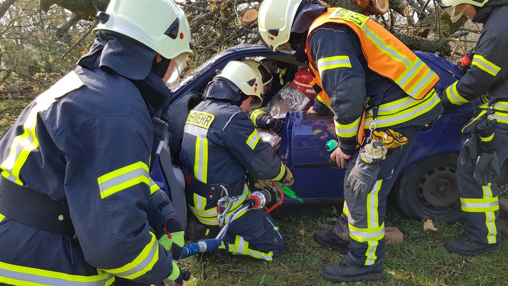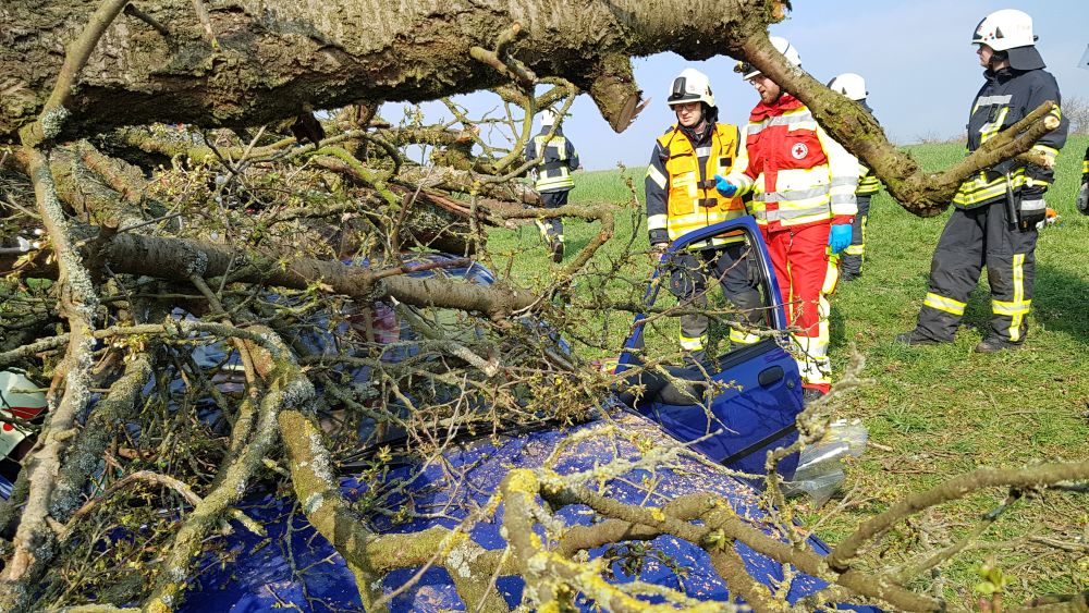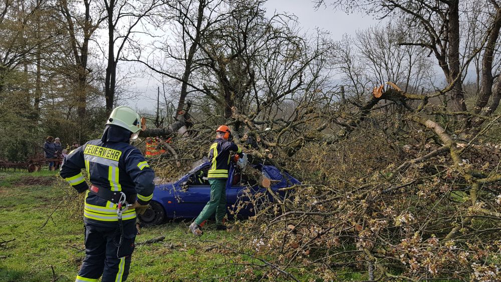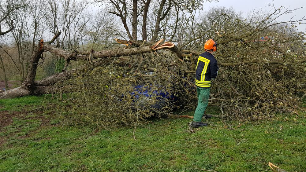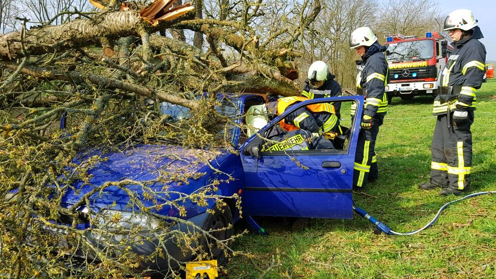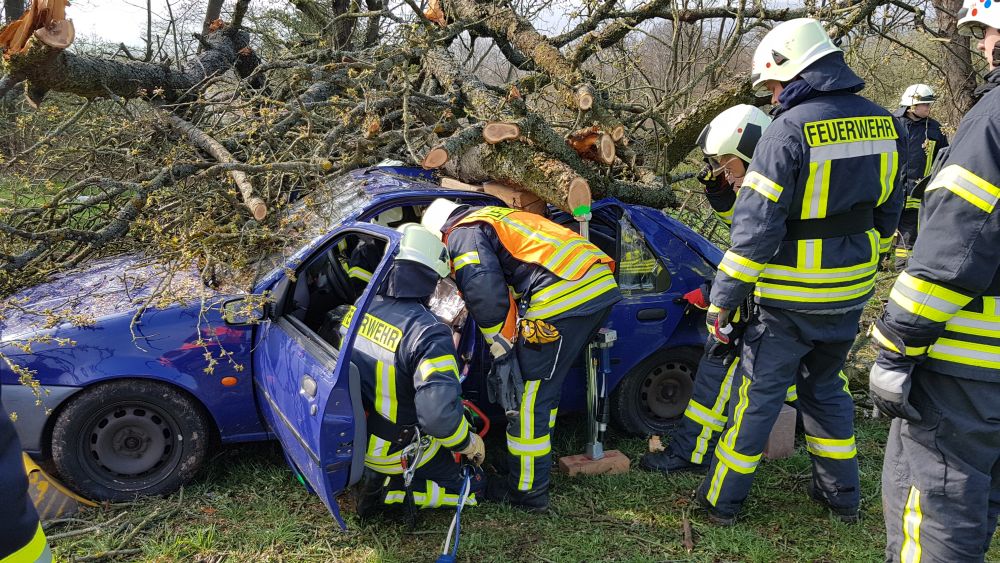 Umgestürzte Bäume sperrten Personen in Ihren Fahrzeugen ein, hier musste die Feuerwehr zunächst die Äste entfernen, dann die dicken Stämme zersägen und zur Seite schaffen. Erst dann konnten die Verletzten aus ihren Gefängnissen befreit werden. Insgesamt mussten 28 Einsatzstellen nach und nach abgearbeitet werden. Auch eine Sandfüllstation wurde eingerichtet, um mit den Sandsäcken das Wasser zurück halten zu können. In Gertenbach wurde am Feuerwehrgerätehaus eine Verpflegungsstation für die freiwilligen Helfer eingerichtet. Die Veranstalter dieser Übung haben ganz sicherlich die hier nachgestellten Maßnahmen nicht übertrieben. Schon sehr oft haben extreme Wetterlagen besonders im Raum Witzenhausen dafür gesorgt, dass sich das Wasser seinen Weg gesucht hatte. Mit vielen Einsatzkräften musste z.B. 2013 ein möglicher Dammbruch verhindert werden. In wie weit die Einsatzleitung mit dem Ablauf der Übung zufrieden war und wo nachgebessert werden muss, wird sich erst nach einer genauen Auswertung zeigen.