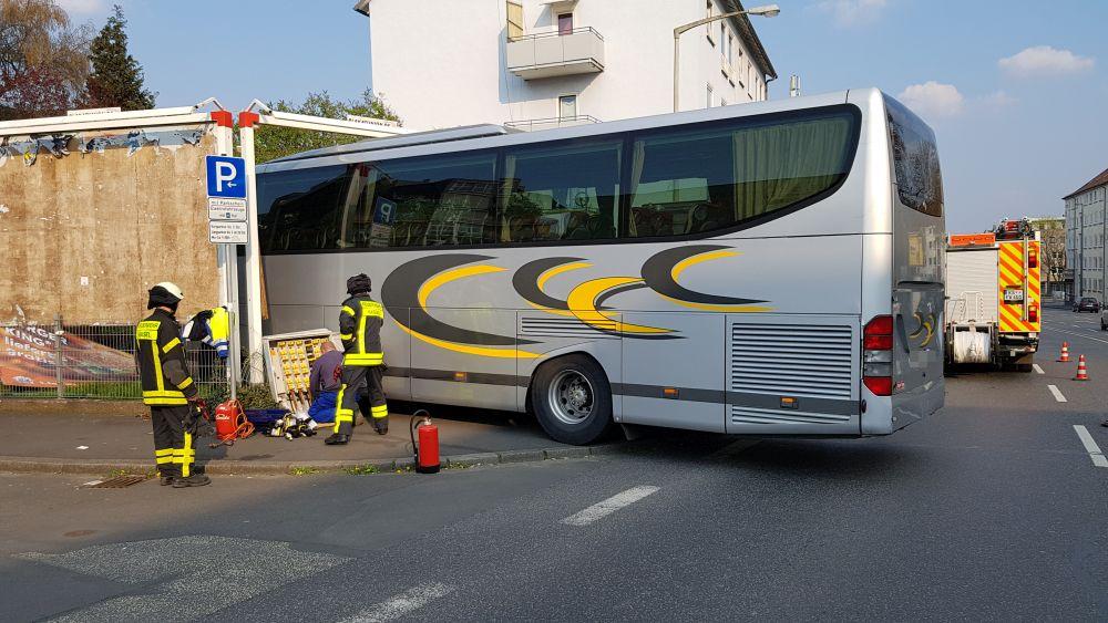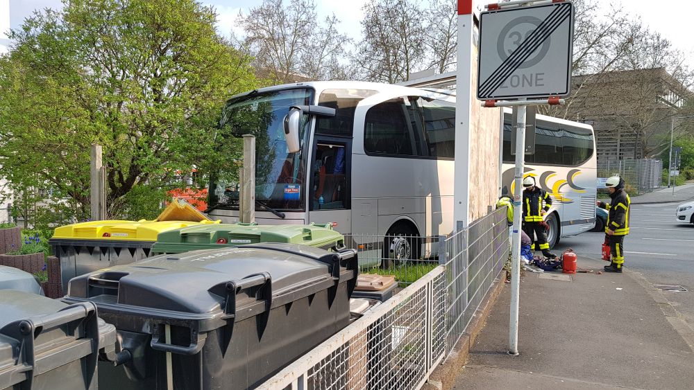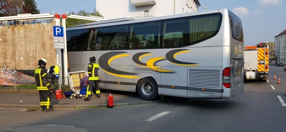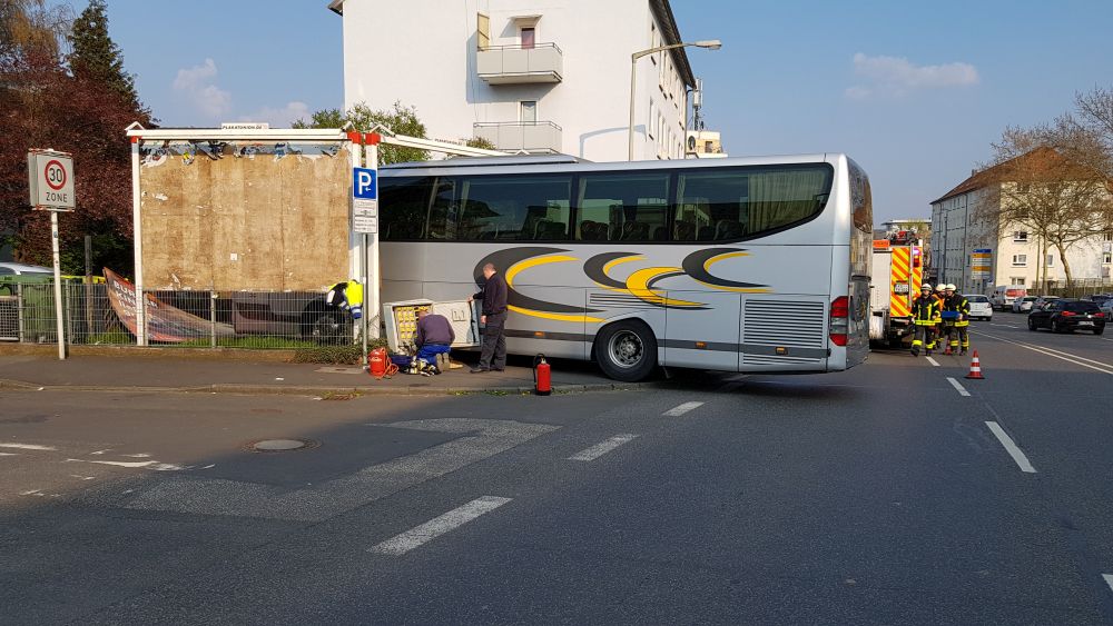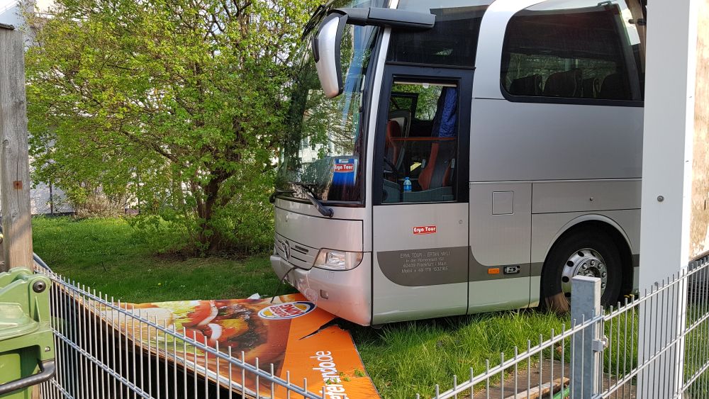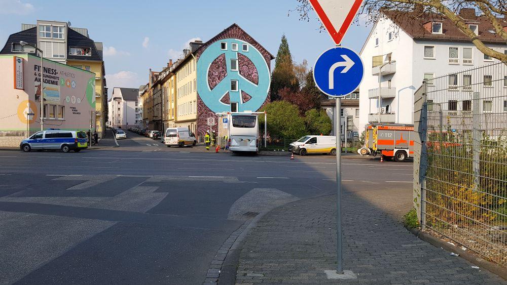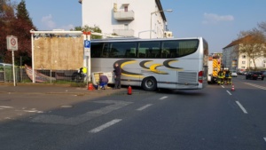 Kassel – Am Sonntagnachmittag kam es in Kassel zu einem kuriosen Unfall mit einem Reisebus. Der Fahrer hatte den Bus nahe der Berufsfeuerwehr abgestellt um essen zu gehen. Aus bisher nicht geklärter Ursache machte sich der Bus plötzlich selbständig und fuhr ohne Fahrer los. Zunächst überquerte er die Wolfhagen Strasse in Richtung Giesbergstrasse, krachte dann gegen einen Stromkasten, durchbrach eine Plakatwand und kam