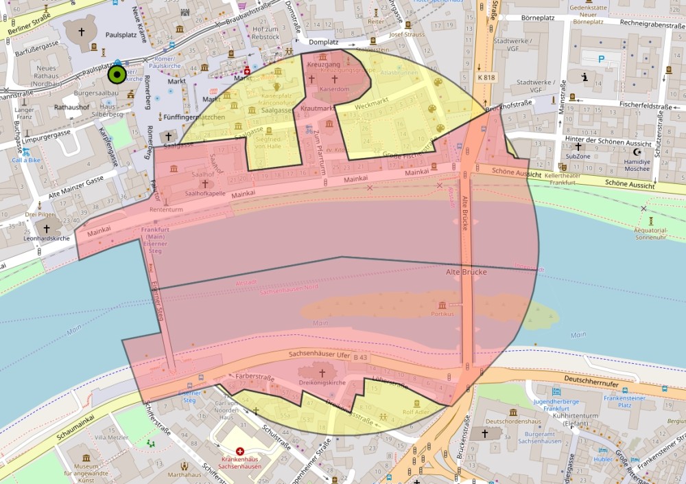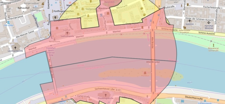 Aus Sicherheitsgründen müssen dazu auf beiden Seiten des Mainufers die ersten Häuserreihen in einem festgelegten Bereich evakuiert werden. Des Weiteren wird in der zweiten Häuserreihe, in einem ebenfalls vom Kampfmittelräumdienst festgelegten Bereich, eine besondere Verhaltensweise einzuhalten sein. Dies bedeutet, dass betroffene Anwohner in den Gebäuden (gelbe Schutzzone) verbleiben dürfen. Sie sind jedoch angehalten, Fensterbereiche auf der dem Main zugewandten Seite zu meiden sowie Fenster und Türen geschlossen zu halten. Der Aufenthalt im Freien ist in diesem Bereich für die Dauer der Evakuierungszeit aus Sicherheitsgründen verboten. Im Bereich des Straßen- und Schiffsverkehrs sowie im öffentlichen Nahverkehr wird es durch Sperrungen zu Behinderungen kommen. Rote Zone (Evakuierungszone): Alle Bewohner dieser Zone müssen bis Sonntag, 14. April 2019, 08:00 Uhr ihre Wohnung sowie diesen Bereich verlassen haben. Im Anschluss daran wird der Bereich durch die Polizei und die Stadtpolizei kontrolliert. Gelbe Zone (Schutzzone): Hier gilt wie oben beschrieben die Vorgabe der besonderen Verhaltensweisen, die am Sonntag, 14.04.19 ab 09:30 Uhr bis zur Freigabe einzuhalten sind. Eine Betreuungsstelle für die von der Evakuierung betroffenen Personen wird im Ratskeller des Römers, Paulsplatz 5, eingerichtet. Betroffene Anwohner werden auch mittels Wurfzetteln informiert. Diese werden gebeten, auch ihre Nachbarn zu informieren. Ferner erfolgen aktuelle Rundfunkwarnmeldungen. Über die Dauer der Maßnahmen können noch keine konkreten Angaben gemacht werden. Das Ende der Sperrungen wird durch Rundfunkdurchsagen sowie über die Social-Media-Kanäle und die bekannten Webseiten der Frankfurter Feuerwehr und der Frankfurter Polizei bekannt gegeben.