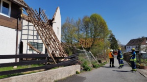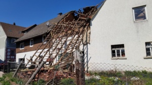 Hessisch Lichtenau – Am Donnerstagmittag gegen 12.00 Uhr stürzten Teile eines Eckhauses in Walburg bei Hess. Lichtenau ein. Die 59-jährige Bewohnerin die sich im Haus befand, wurde glücklicherweise nicht verletzt. Schon vor zwei Jahren sind Teile des Gebäudes eingestürzt, wurden aber bis heute jedoch noch nicht repariert. Zur Absicherung der Giebelfront wurde das THW verständigt. Auch die EAM wurde benachrichtigt, um die Stromversorgung abzuschalten.