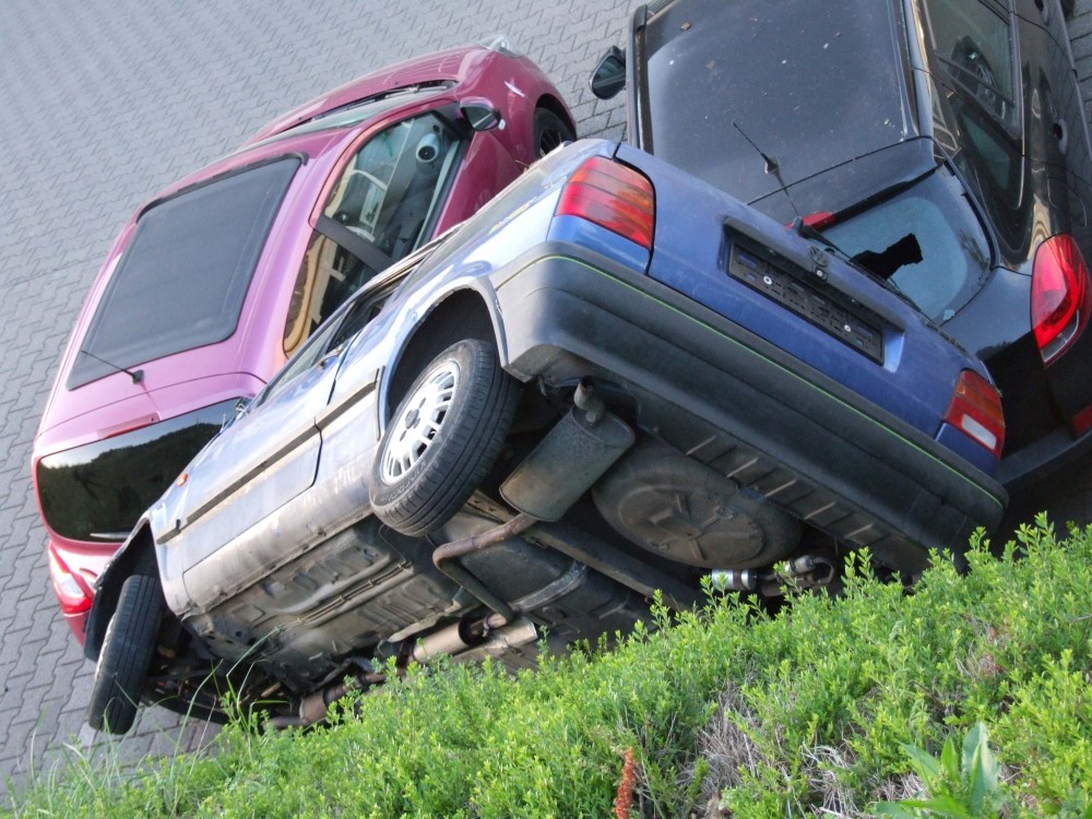 Büdingen – Dass da etwas nicht stimmen konnte, merkte ein Passant in der Düdelsheimer Straße am Ortsausgang von Büdingen am Mittwochmorgen sehr schnell, als er um 05 Uhr einen Polo schräg auf zwei anderen Autos „parkend“ sah. Er verständigte die Polizei, die nach und nach die ungewöhnliche Parkposition aufklärte. Es stellte sich heraus, dass der Polo nur durch einen Unfall in die Situation geraten sein konnte. Auf der B 457 von Büdingen in Richtung Büches fahrend, verlor der Fahrer offenbar kurz vor dem Ortsausgang die Kontrolle über den PKW, kam nach links von der Fahrbahn ab auf den angrenzenden Radweg, prallte gegen eine Schutzplanke, schleuderte mit seinem PKW über den Weg und kam schließlich auf einem tiefer liegenden Parkplatz auf den geparkten Autos zum Stehen.