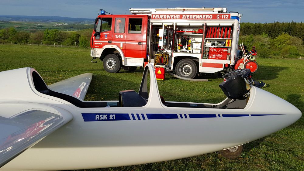 Zierenberg – Am Donnerstagnachmittag kam es auf dem Segelflugplatz „Hoher Dörnberg“ gegen 17.50 Uhr zu einem schweren Unfall mit einem Segelflieger. Nach ersten Informationen von der Unfallstelle kam es zu einer so genannten „Startunterbrechnung“ und das Segelflugzeug vom Typ ASK 21 musste aus einer Höhe von rund sechs Metern eine harte Landung durchführen. Im Flieger befanden sich der 46- jährige Fluglehrer und seine 17-jährige Flugschülerin. Um beide Personen aus dem Segelflieger befreien zu können, musste die Kanzel durch die Feuerwehr mit hydraulischem Gerät entfernt werden.