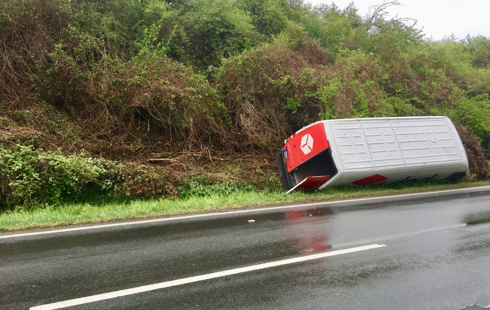 Lieschensruh – Vermutlich war es der Witterung nicht angepasste Geschwindigkeit, welche am Freitagmittag zu einem Alleinunfall nahe Lieschensruh führte. Eine Person wurde verletzt, der Sachschaden wird von der Polizei auf rund 3000 Euro beziffert. Ein 20-jähriger Fahrer eines Kleintransporters, welcher die L 3383 in Richtung Bergheim befuhr, geriet nur wenige Meter hinter dem Ortsschild von Lieschensruh in einer langen Linkskurve nach links von der Fahrbahn ab.