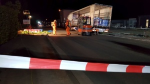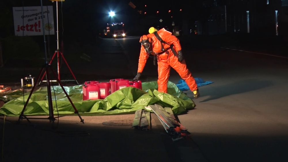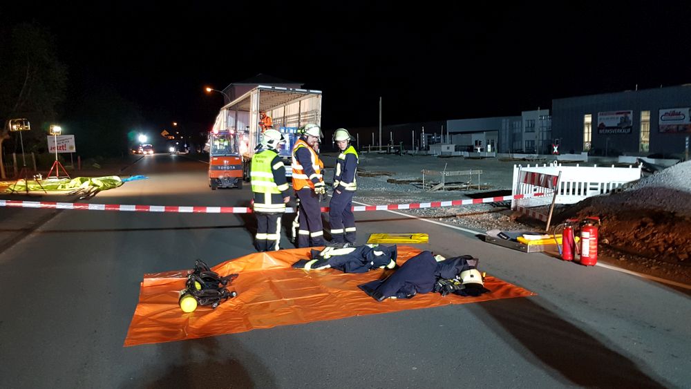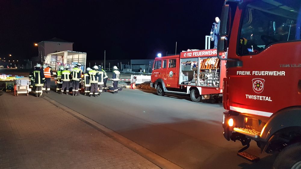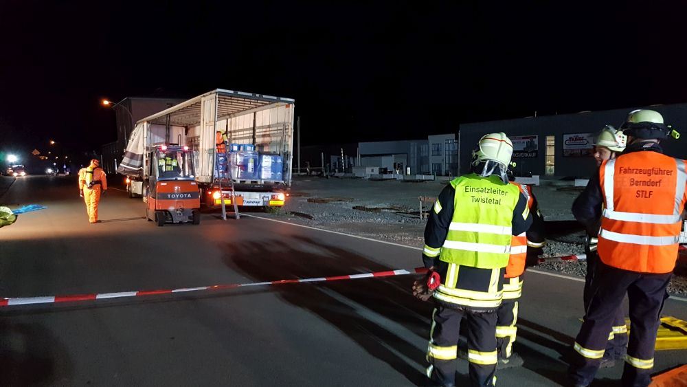 Twiste – Am Montagabend gegen 21.50 Uhr meldete ein 48-jähriger LKW-Fahrer der Leitstelle des Landkreises Waldeck-Frankenberg, dass er mit seinem LKW in der Ortslage von Twistetal-Twiste steht und aus seinem Auflieger Reinigungsflüssigkeit ausgelaufen sei. Er vermutete, dass durch vorheriges verkehrsbedingtes scharfes Bremsen ein Teil seiner Ladung verrutscht sei und dadurch ca. 5 Kanister mit säurehaltigen und alkalischen Flüssigkeiten ausgelaufen seien. Durch die Feuerwehren aus Twistetal, Korbach und Bad Arolsen konnte festgestellt werden, dass geringe Mengen der Flüssigkeit auf die B 252 in der Ortslage von Twistetal-Twiste ausgelaufen waren. Daraufhin wurde die Bundesstraße voll gesperrt. Der Verkehr musste in beiden Richtungen umgeleitet werden.