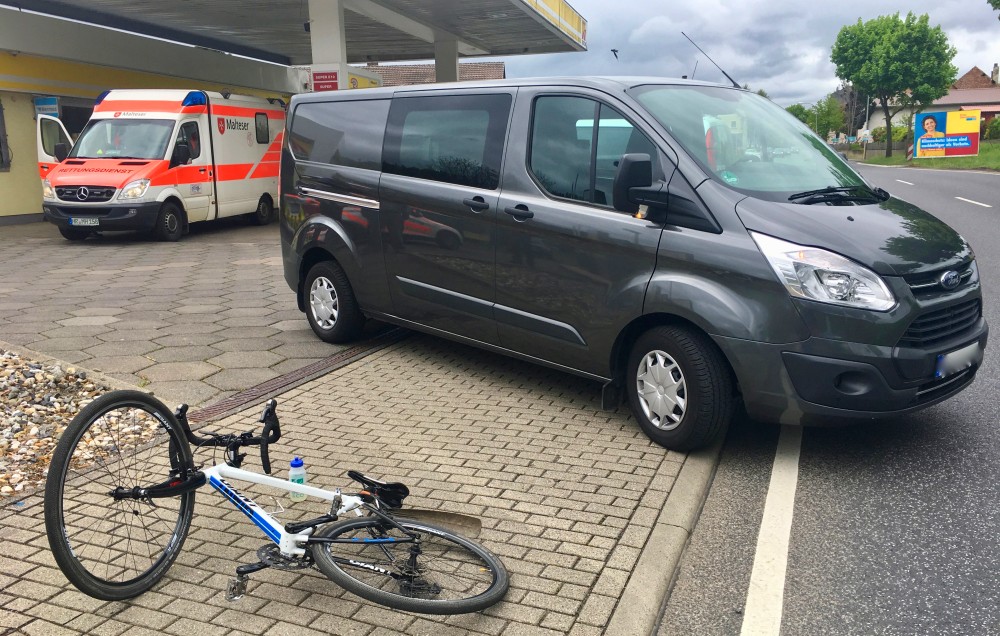 Borken – Zu einer Kollision zwischen einem PKW und einem Radfahrer, kam es am frühen Donnerstagnachmittag in der Ortslage von Kerstenhausen. Dabei wurde eine Person leicht verletzt. Nach ersten Erkenntnissen von der Einsatzstelle wollte ein 58-jähriger Fahrzeugführer aus Sachsen-Anhalt von dem Gelände einer Tankstelle auf die Bundesstraße 3 in Richtung Autobahn auffahren. Bei überfahren des Fußgängerweges, welcher in diesem Bereich auch als Radweg dient, übersah der Mann vermutlich einen aus Richtung Arnsbach kommenden Radfaher.