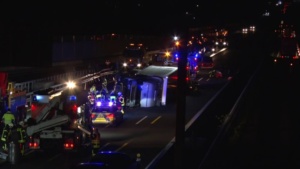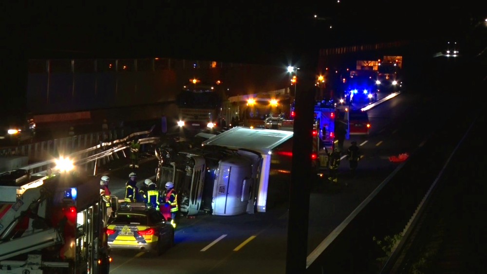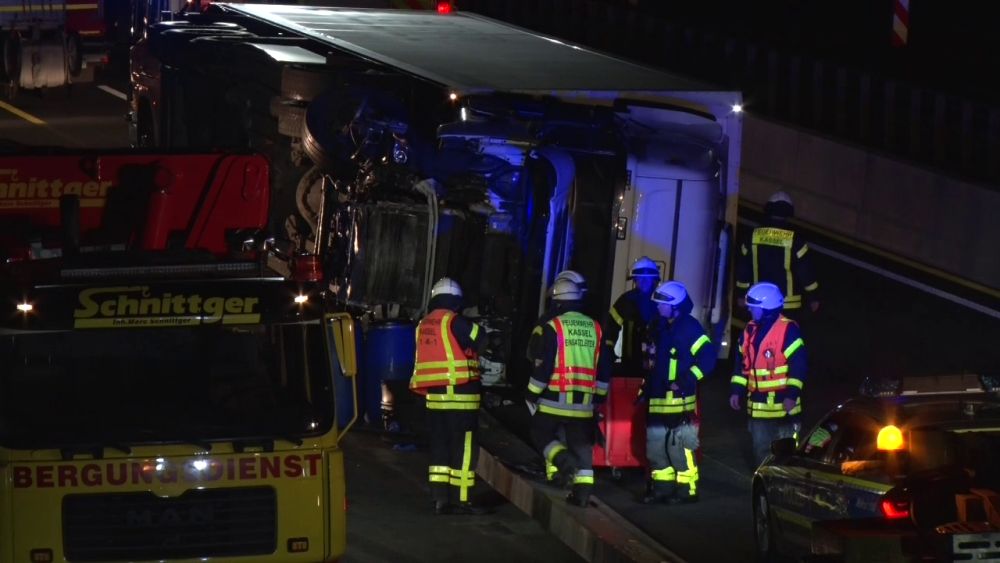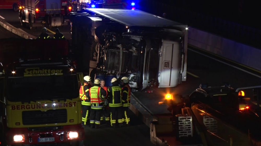 Kassel – In der Nacht von Montag auf Dienstag kam es auf der A7 zu einem LKW Unfall. Aus bisher nicht geklärter Ursache durchbrach der Fahrer mit seinem Fahrzeug die Baustellenleitblanke und kippte auf die Fahrbahn. Die Autobahn musste ab dem Autobahnkreuz Kassel Mitte in Fahrtrichtung Göttingen für mehrere Stunden voll gesperrt werden.