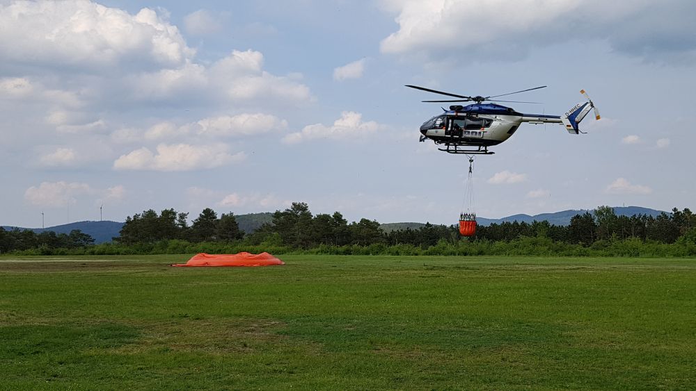 Es gibt gewisse Voraussetzungen um eine solche Anlage überhaupt nutzen zu können. Weitere Einzelheiten erfahrt Ihr im Video hier auf der Seite. Bei dieser Übung ging es nun darum zunächst die neue Ausrüstung zu testen und mögliche Fehler zu erkennen. Neben der Bundespolizei war auch die Landespolizei Egelsbach mit einem Hubschrauber beteiligt. Aus dem nahe liegenden Twiste See wurde mit dem Hubschraubern das Wasser zu den Abrollbehältern geflogen. Keine leichte Aufgabe für die Piloten, denn hier gibt es viele Dinge zu beachten um mit den „Bambi-Buckets“ die Behälter zu füllen. Die Piloten müssen das Wasser in eine nur rund zwei Meter große Öffnung des darunter stehenden Behälters füllen, was je nach Wind und Wetter sehr viel Erfahrung und Geschicklichkeit erfordert. Die neue Ausrüstung ist jedoch ausschließlich für die Brandbekämpfung gedacht und bringt der Feuerwehr keinerlei Erleichterung bei der regulären Brandbekämpfung. Die Verantwortlichen sind mit der Übung zufrieden und können nun im Rahmen einer Auswertung an möglichen Mängeln und Fehlern arbeiten. Insgesamt nahmen an der Übung 44 Einsatzkräfte des Katastrophenschutzzuges Wolfhagen teil.