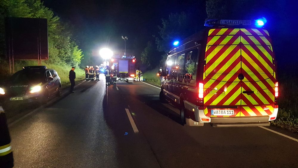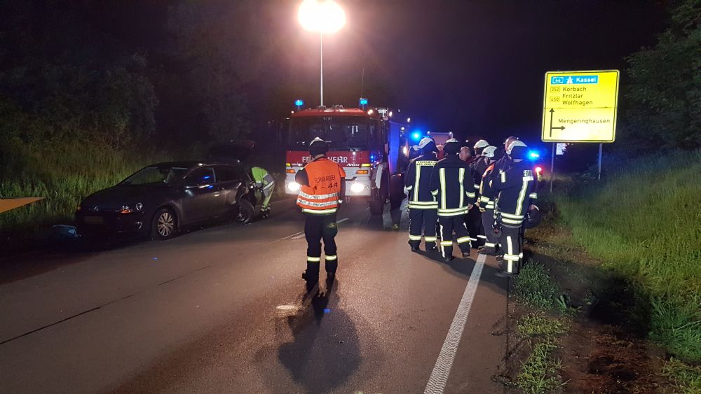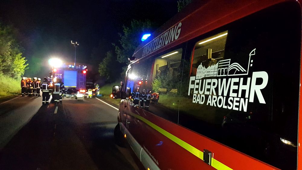 Der Fahrer wurde im Fahrzeug eingeschlossen und konnte mit einer Patienten schonenden Rettung befreit werden. Er wurde nach einer Erstversorgung an der Unfallstelle in ein Krankenhaus eingeliefert. Die Feuerwehr Bad Arolsen war mit 28 Einsatzkräften vor Ort, leuchtete die Unfallstelle aus, kümmerte sich und die Absperrung und die Reinigung der Fahrbahn. Der Sachschaden wird auf 28.000 Euro geschätzt. Die Bundesstraße war rund eine Stunde voll gesperrt.