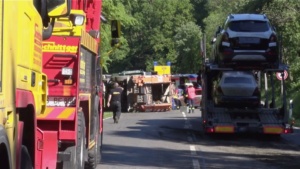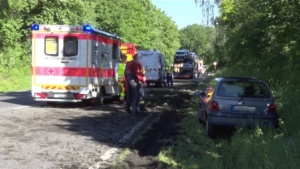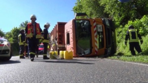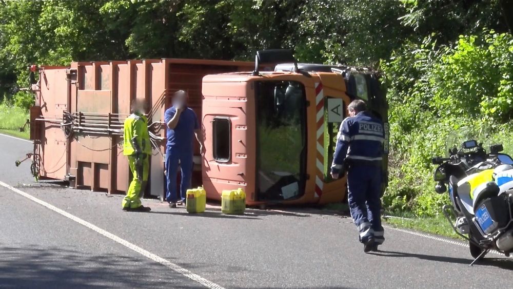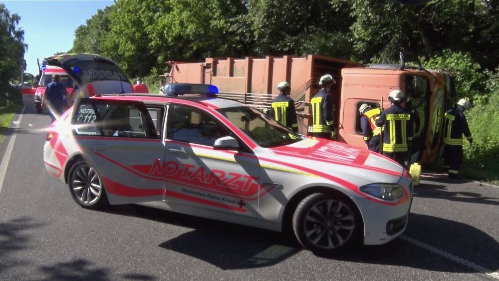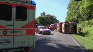 Der Fahrer, ein 43-jährigen Mann aus Niestetal, versuchte vermutlich noch gegenzusteuern. Er querte mit seinem über 20 Tonnen schweren Laster die Bundesstraße, krachte auf der gegenüberliegenden Seite vor einen Wasserdurchlass, fuhr eine steile Böschung entlang und kippte mit dem Gefährt schließlich um. Alle drei Insassen, darunter ein 40-jähriger Mann aus Helsa sowie ein 56 Jähriger aus Hessisch Lichtenau, wurden dabei zum Teil schwer verletzt und mussten in umliegende Krankenhäuser gebracht werden. Eine nachfolgende Autofahrerin (45) aus Melsungen erkannte vermutlich das Stauende erst spät und wich vor Schreck nach rechts in den Graben aus. Sie wurde glücklicherweise nur leicht verletzt. Den Schaden beziffert die Polizei auf insgesamt 45.000 Euro. Insgesamt waren drei Rettungswagen, ein Notarzt, die Feuerwehr sowie die Polizei vor Ort im Einsatz. Die Bundesstraße war während der Rettungs- und Bergungsmaßnahmen für mehrere Stunden voll gesperrt.