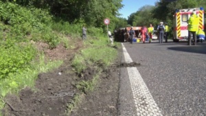 Gensungen – Zu einem Verkehrsunfall mit insgesamt vier Verletzten kam es am Mittwochvormittag auf der Bundesstraße zwischen Gensungen und der Anschlussstelle zur A7. Ein Müllwagen war aus bislang ungeklärten Umständen auf die Bankette geraten und im weiteren Verlauf umgekippt. Ein weiteres Fahrzeug wich dem Stauende aus und landete im Graben. Ein aus Richtung Melsungen kommender beladener Mülllaster kam auf der Gefällstrecke kurz vor Gensungen aus bislang ungeklärten Umständen nach rechts von der Fahrbahn ab.