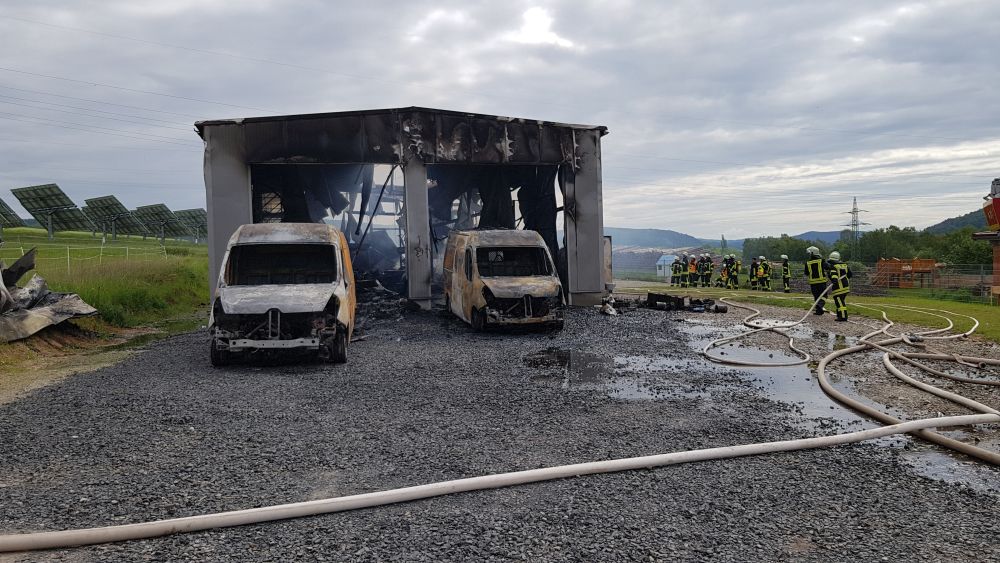 Lagerhalle mit Eventtechnik und zwei Transportern ausgebrannt