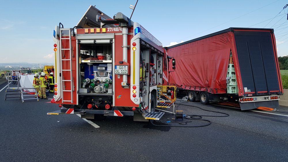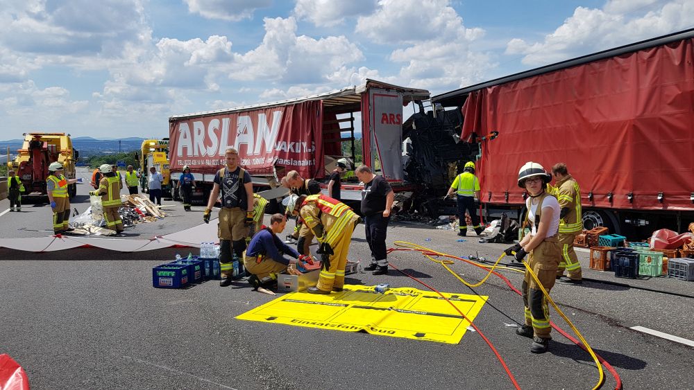 Über vier Stunden hatten die Einsatzkräfte zu tun, um den schwer Verletzten Mann aus dem Wrack zu befreien. Nach einer Erstversorgung an der Unfallstelle wurde der Mann in ein Krankenhaus eingeliefert. Einer der beiden ebenfalls am Unfall beteiligten Fahrer wurde eher leicht verletzt, der andere kam nach letzten Informationen mit dem Schrecken davon. Folgeeinsätze Durch die anhaltende Vollsperrung, musste ein Tiertransporter von der Feuerwehr gekühlt werden. Die Feuerwehr sorgte dafür, dass der Tiertransporter sowie ein PKW mit Pferdeanhänger als erstes weiter fahren konnten. Auch eine Schwangere Frau kollabierte im Stau und musste versorgt werden. Gegen 15 Uhr konnte der linke Fahrstreifen wieder für den Verkehr freigegeben werden. Die Verkehrsteilnehmer, die zwischen der Unfallstelle und der Anschlussstelle Lutterberg rund sechs Stunden festsaßen, konnten ihre Fahrt fortsetzen. Zwischenzeitlich war eine Versorgung der dort festsitzenden Menschen mit Getränken über die Feuerwehr in die Wege geleitet worden. An der Anschlussstelle Lutterberg wurde der nachfolgende Verkehr umgeleitet, bis der dazwischen liegende Bereich zwischen Lutterberg und der Unfallstelle leergelaufen war. Die Sperrungen des mittleren und rechten Fahrstreifens im Bereich der Unfallstelle werden noch für unbestimmte Zeit andauern. Ein Gutachter wurde mit der Rekonstruktion des Unfallhergangs beauftragt und nimmt der derzeit seine Arbeit am Unfallort vor. Anschließend mussten die beschädigten Fahrzeuge abgeschleppt und die Fahrbahn gereinigt werden. Aufgrund dessen ist auch weiterhin noch mit andauernden Behinderungen auf der A 7 in Richtung Süden zu rechnen.