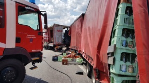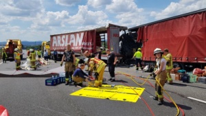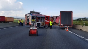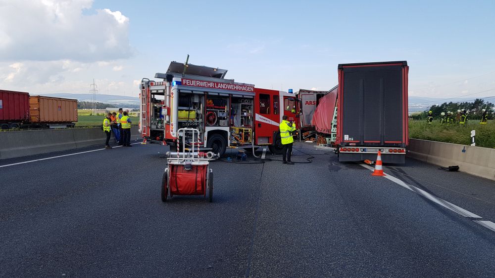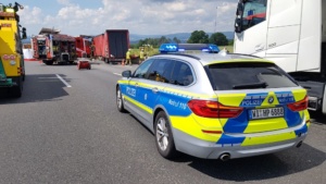 Kassel – Zu einem schweren LKW Unfall kam es am Montagvormittag auf der A7 zwischen Lutterberg und Kassel Nord. Nach ersten Informationen der Polizei befuhren zwei Sattelzüge die Autobahn in Richtung Süden. Die beiden Fahrer mussten verkehrsbedingt ihre Fahrzeuge anhalten. Ein dritter LKW-Fahrer erkannte diese Situation viel zu spät und krachte mit voller Wucht in die stehenden Fahrzeuge. Der Unfallfahrer wurde bei dem Aufprall massiv in seinem Fahrerhaus eingeklemmt.
