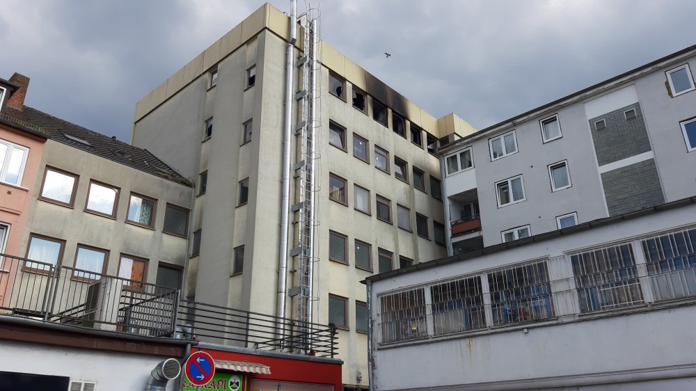 Kassel – Durch mehrere Notrufe am Freitagnachmittag wurde ein vermeintlicher Dachstuhlbrand in der Kasseler Innenstadt gemeldet.Als die ersten Kräfte der Feuerwehr bereits nach vier Minuten am Brandobjekt in der „Untere Königstraße“ eintrafen, machten sich mehrere Menschen am Fenster des 5.OG auf sich aufmerksam und dichter Rauch quoll aus den Fenstern. Die Erkundung durch die Feuerwehr ergab, dass im 5.OG eine Wohnung im Vollbrand stand und die Flammen bereits aus den Fenstern der Gebäuderückseite schlugen.