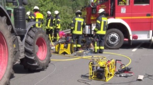 Der Pkw fuhr dem Traktor gegen das linke Vorderrad, wurde von diesem abgewiesen und krachte vor einen Baum. Durch den Aufprall wurde der 58-jährige Fahrer aus Korbach in seinem Wagen eingeklemmt und musste von der Feuerwehr unter erschwerten Bedingungen befreit werden. Da das Fahrzeug an einem Abhang in Schräglage zum stehen kam, musste es zunächst mit zwei Stahlseilen vor dem umkippen und wegrollen gesichert werden. Erst dann konnten die Kameraden ihre hydraulischen Geräte zur Rettung ansetzen und das Fahrzeugdach entfernen. Insgesamt benötigten die Einsatzkräfte über eine Stunde um den Korbacher aus seinem völlig zerstörtem Fahrzeug zu befreien. Mit schwersten Verletzungen wurde Mann mit dem Rettungshubschrauber Christoph-7 in die Universitätsklinik nach Marburg geflogen. Die Bundesstraße 252 war für über drei Stunden in beide Richtungen voll gesperrt. Neben der Feuerwehr und Polizei aus Frankenberg, waren auch das Deutsche Rote Kreuz aus Frankenberg vor Ort im Einsatz. Den Gesamtschaden beziffert die Polizei auf rund 15.000 Euro.