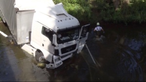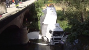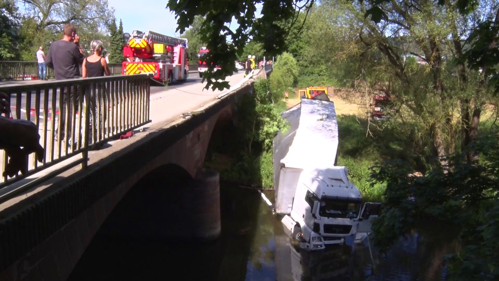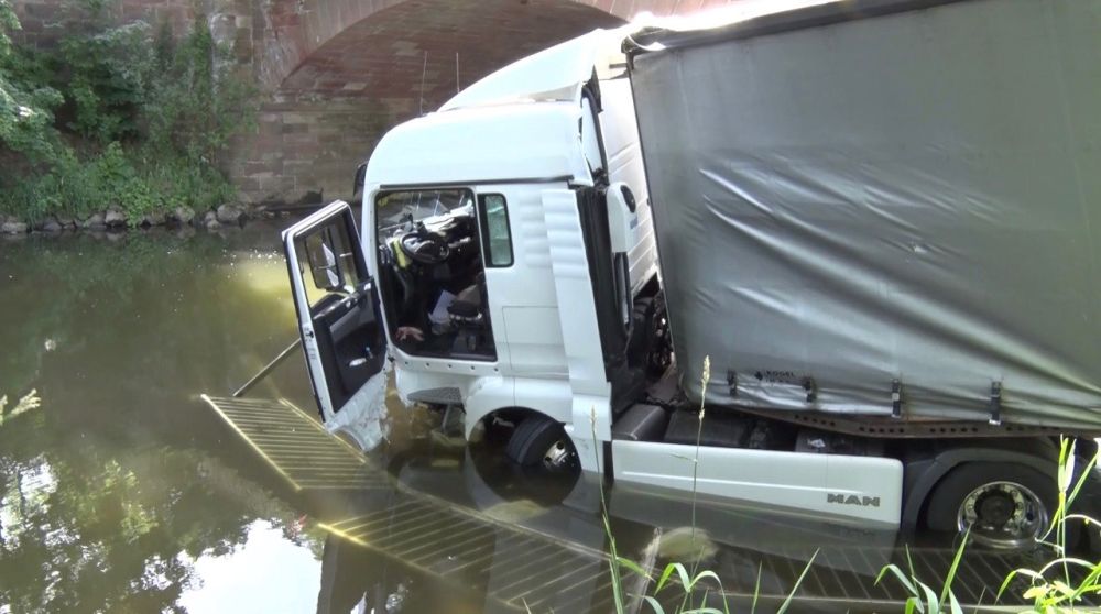 Cölbe – Glück im Unglück hatte ein 61-jähriger Sattelzugfahrer am Donnerstagnachmittag bei Cölbe (Landkreis Marburg-Biedenkopf) nachdem er mit seiner Zugmaschine ein Brückengeländer durchbrach und in die Lahn stürzte. Der Mann wurde glücklicherweise nur leicht verletzt. Nach ersten Erkenntnissen von der Einsatzstelle war der aus dem Neckar-Odenwald-Kreis stammende LKW Fahrer von Cölbe in Richtung Wehrda unterwegs.