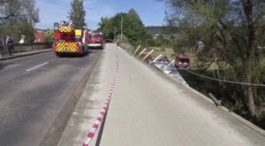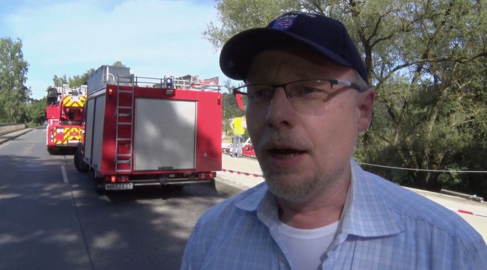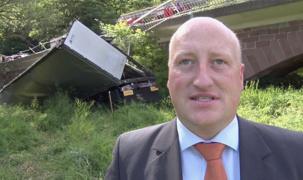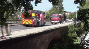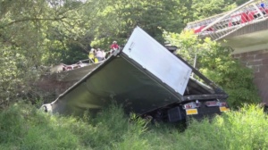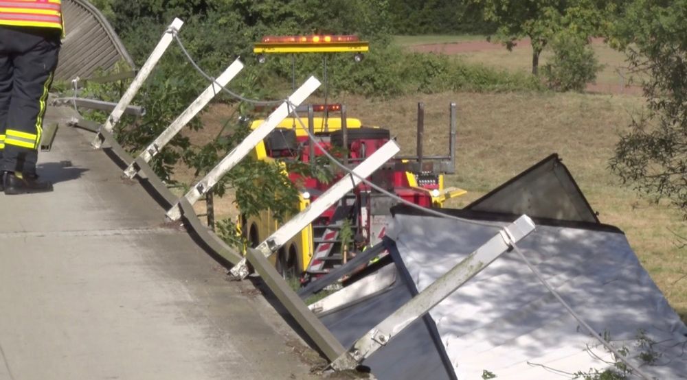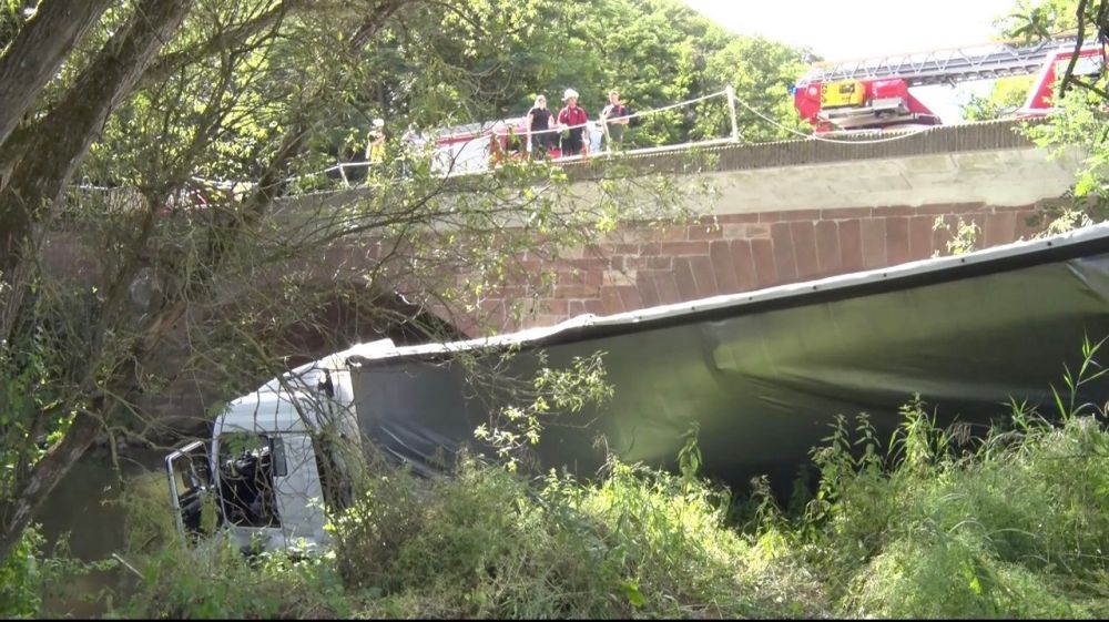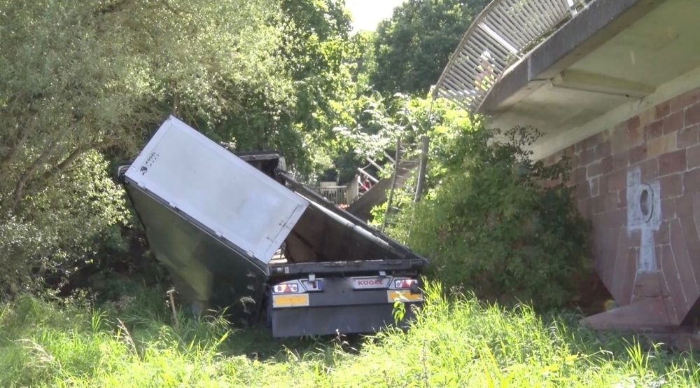 Kurz hinter dem Ortsausgangsschild von Cölbe geriet der 61-Jährige auf einer Lahnbrücke mit dem rechten Vorderrad an den Bordstein eines Fußgängerweges. Von diesem wurde er abgewiesen, querte die Straße, fuhr einen Gehweg hinauf und durchbrach das Brückengeländer. Obwohl der Mann noch eine Gefahrenbremsung einleitete, konnte er den Sturz in die Tiefe nicht mehr verhindern. Der Sattelzug fiel rund acht Meter tief und landete auf den Rädern. Durch die enorme Wucht des Aufpralls wurde der Fahrer glücklicherweise nur leicht verletzt. Während die Zugmaschine im Gewässer der Lahn landete und erheblich beschädigt wurde, blieb der Auflieger mit völlig verzogenem Aufbau an einer Böschung liegen. Weil durch den Unfall ein Dieseltank aufgerissen wurde, musste die Feuerwehr insgesamt drei Ölsperren auf der Lahn errichten. Das Brückengeländer wurde auf einer Länge von rund 30 Metern komplett zerstört. Die gesamtem Schadenshöhe ist derzeit noch nicht bekannt. Die Straße zwischen Wehrda und Cölbe war für mehrere Stunden voll gesperrt.